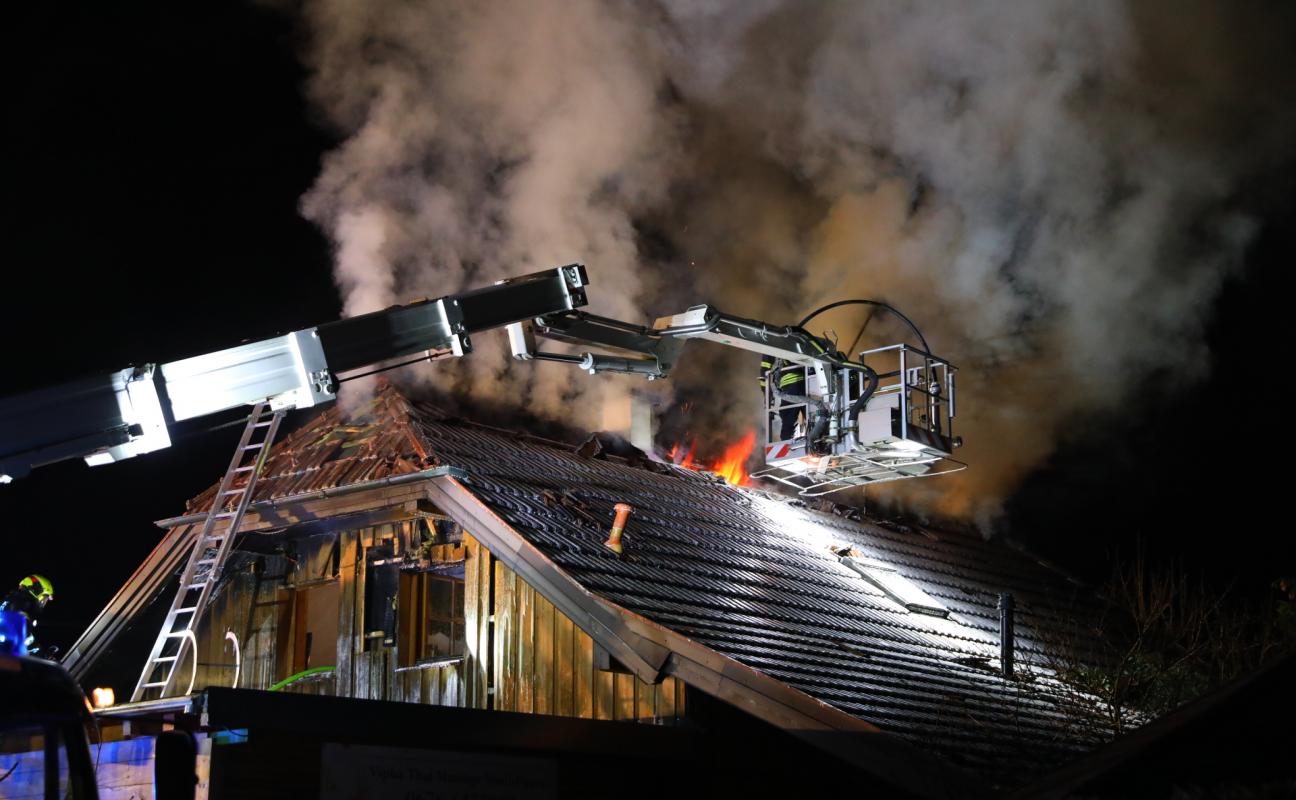 Dachstuhl eines Wohnhauses in Stadl-Paura in Flammen
