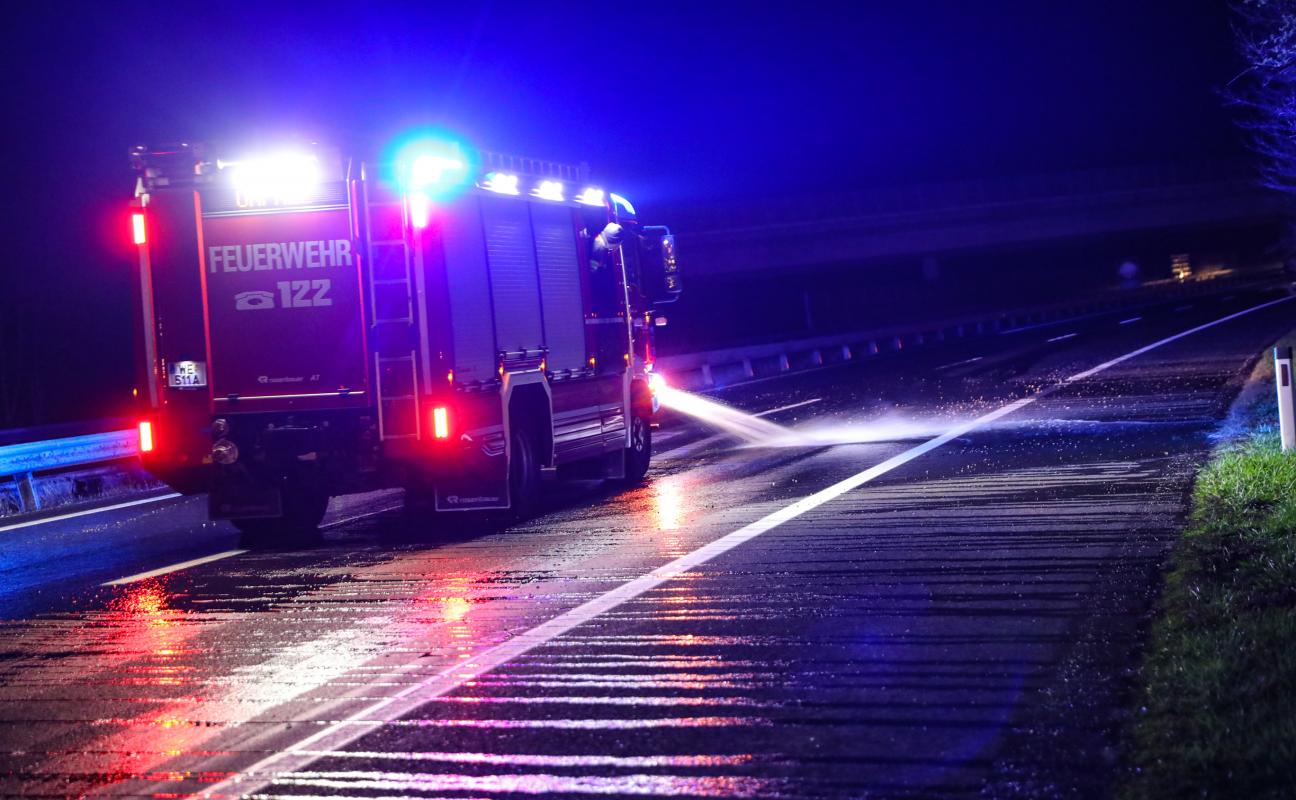 Feuerwehr beseitigt nach Unfall auf der Welser Autobahn Schotter von der Fahrbahn