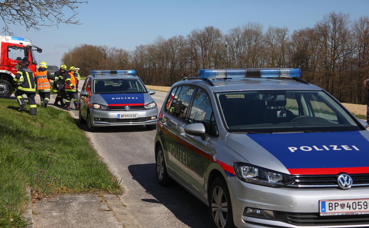 Auto bei Verkehrsunfall in Neukirchen bei Lambach in Feld überschlagen