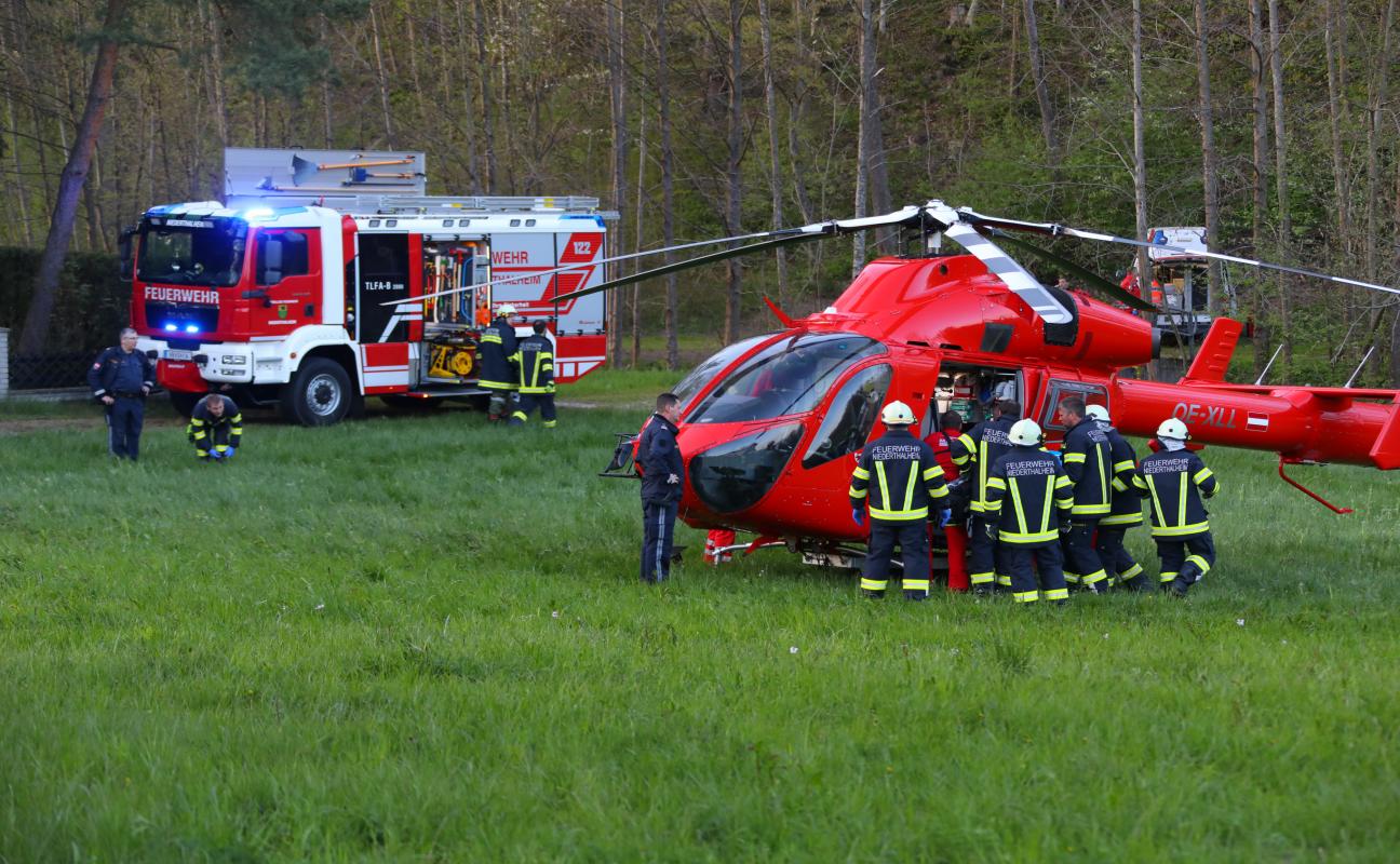 Notarzthubschrauber nach Traktorabsturz in Niederthalheim im Einsatz
