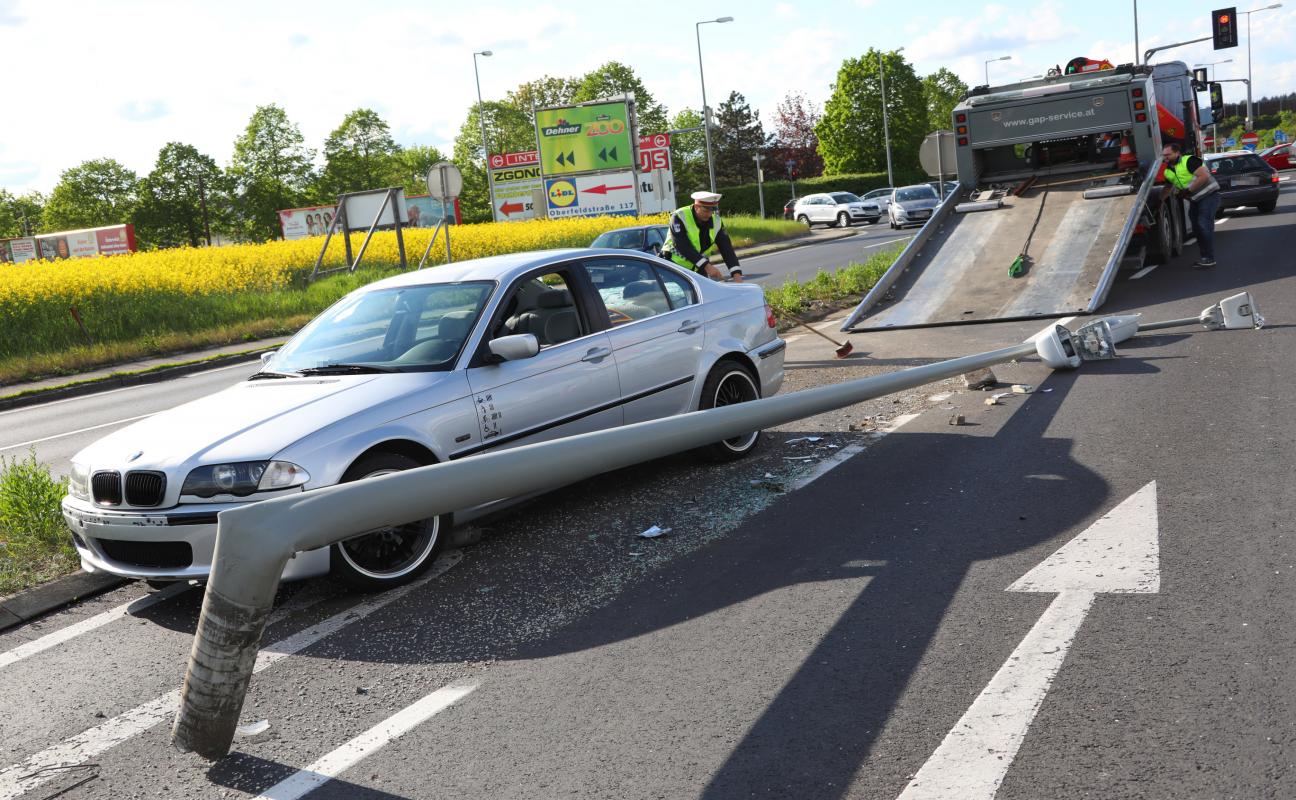 Auto kracht gegen Straßenbeleuchtung: Rasantes Abbiegemanöver in Wels-Neustadt gründlich missglückt