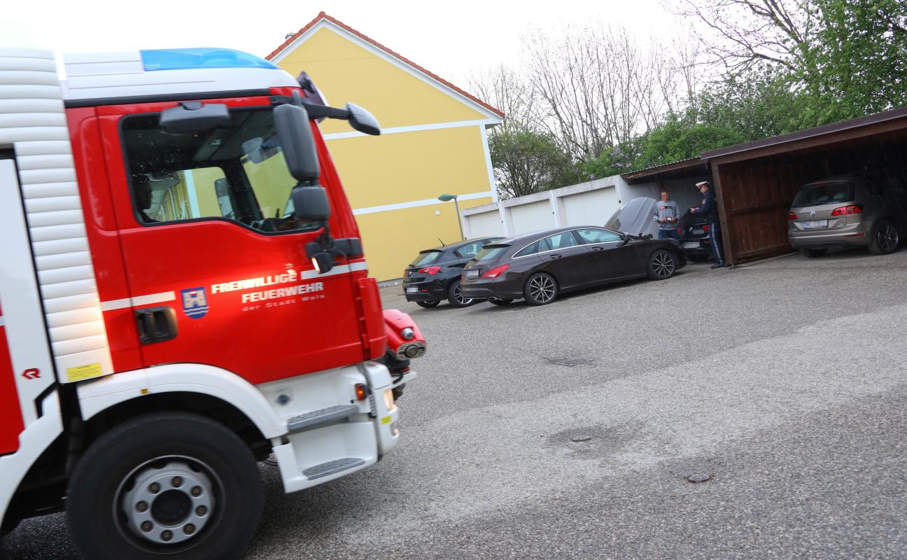 PKW-Brand in Wels-Vogelweide vor Eintreffen der Feuerwehr gelöscht