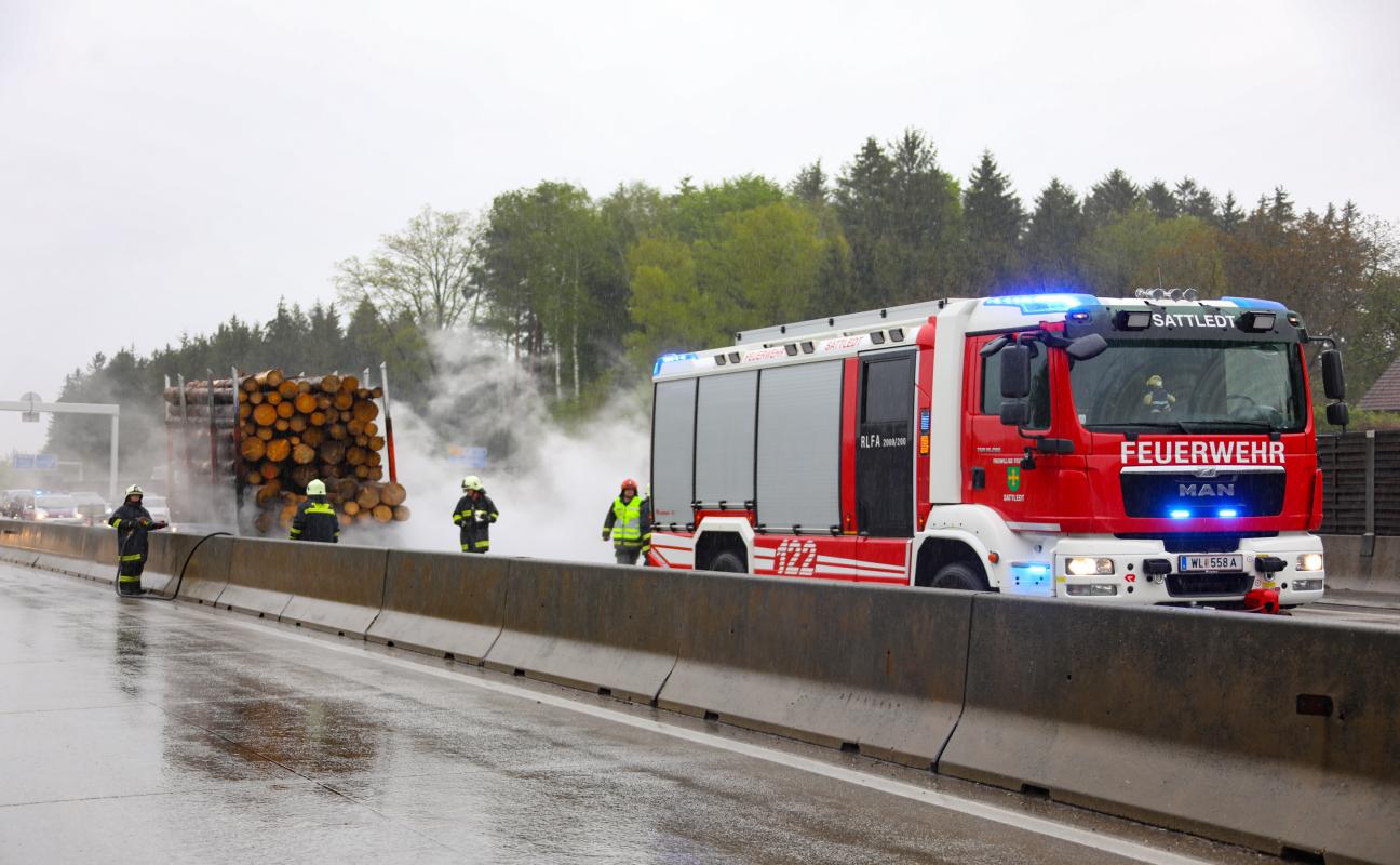 Brand eines Holztransporter-Anhängers auf Westautobahn bei Sattledt