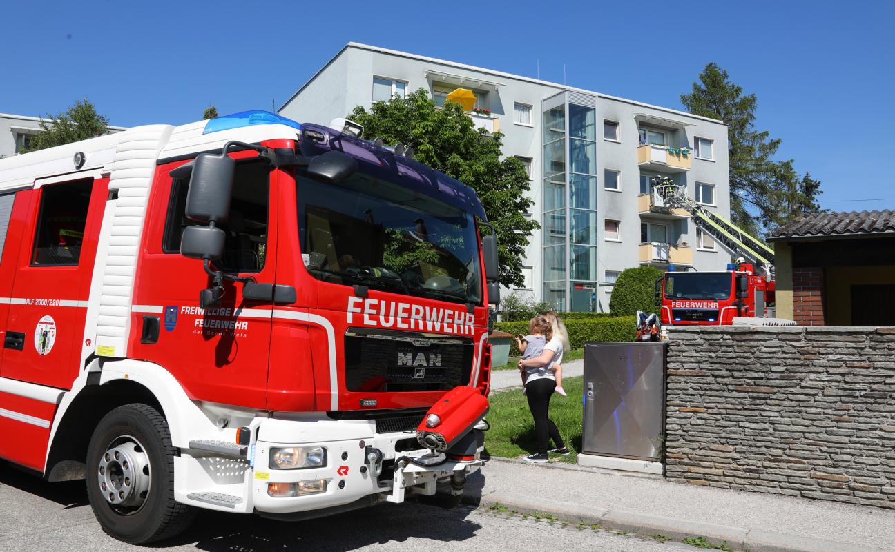 Brand eines Blumenkastens auf dem Balkon eines Mehrparteienwohnhauses in Wels-Vogelweide