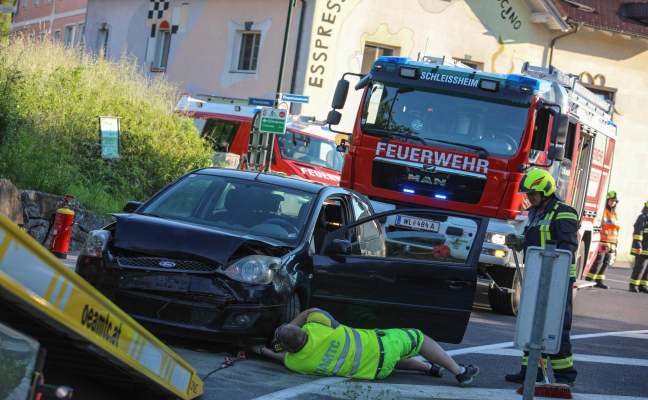 Aufräumarbeiten nach Auffahrunfall in Schleißheim