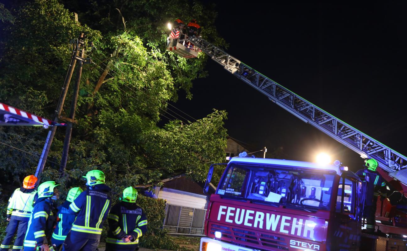 Baum in Marchtrenk bei nächtlichem Gewitter in Strom- und Telefonleitung gestürzt