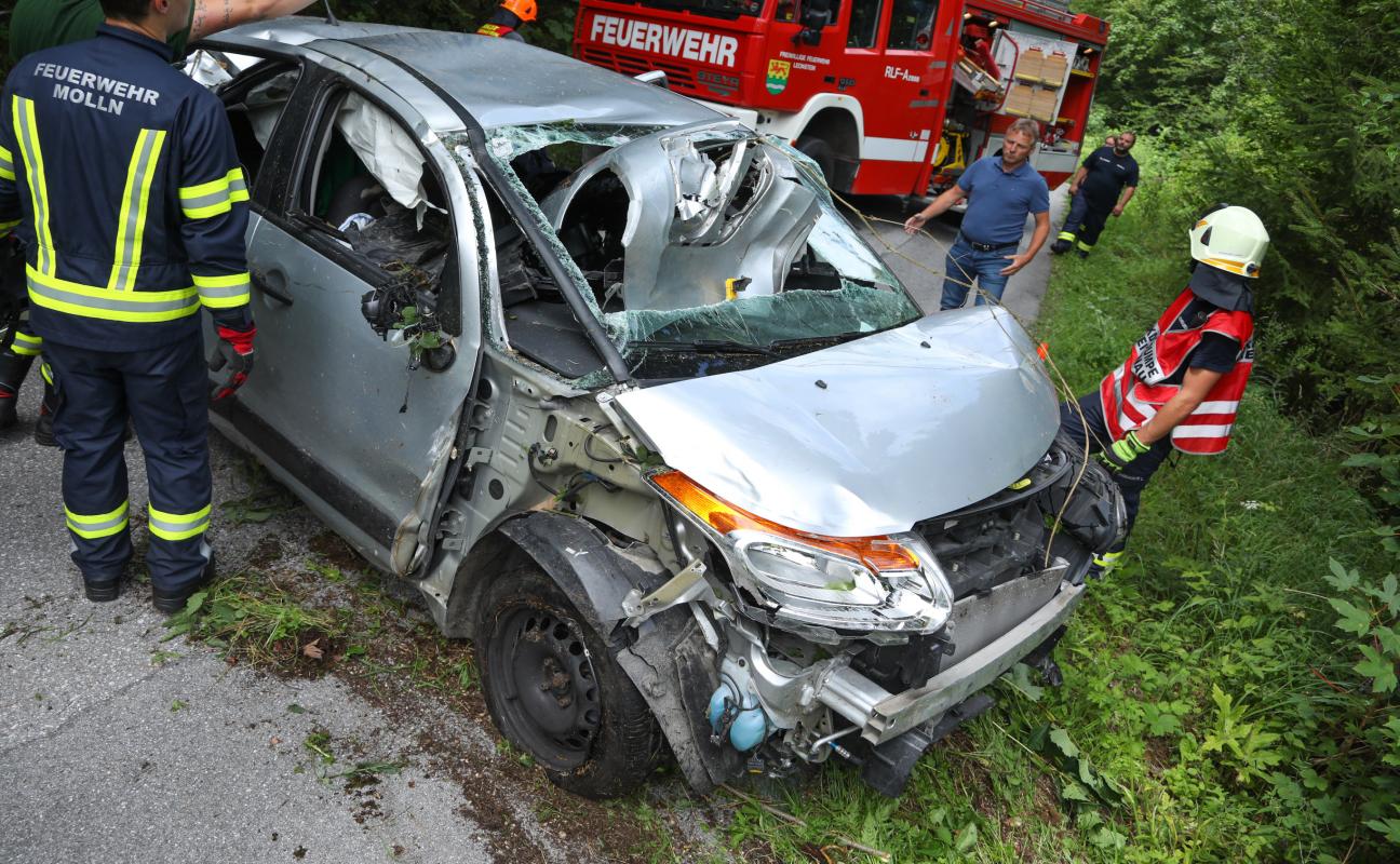 Autolenker bei Verkehrsunfall in Molln mit PKW in steiles Waldstück gestürzt