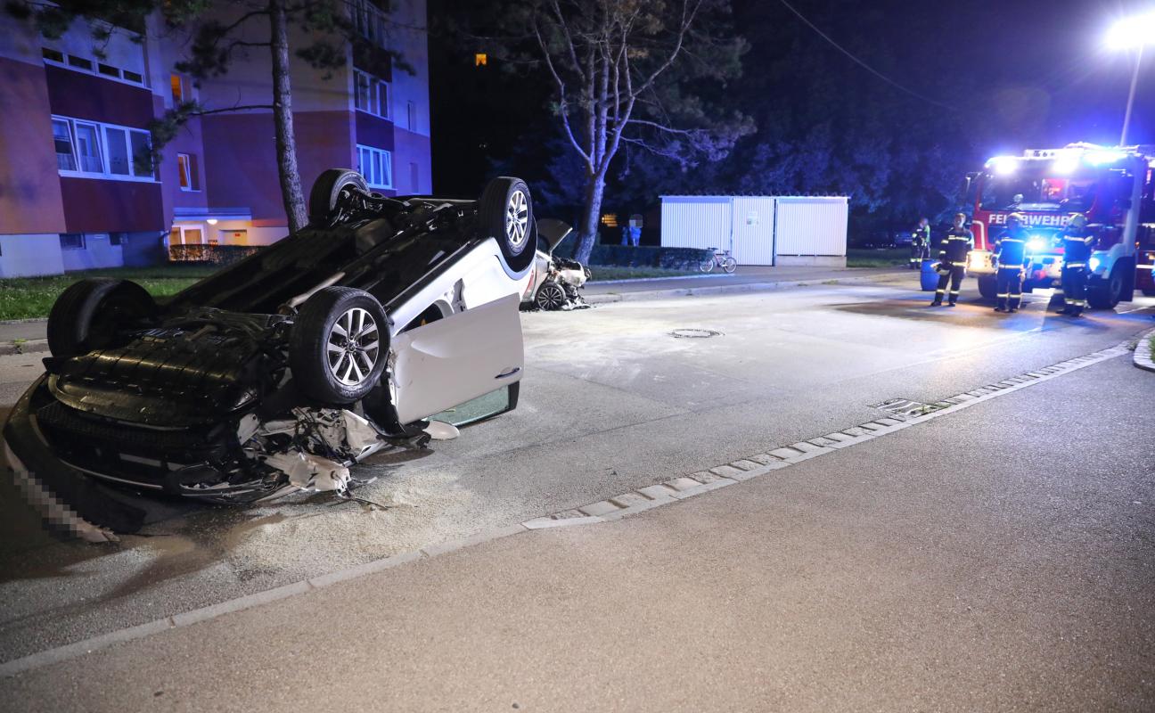 Auto bei Verkehrsunfall in Wels-Vogelweide überschlagen