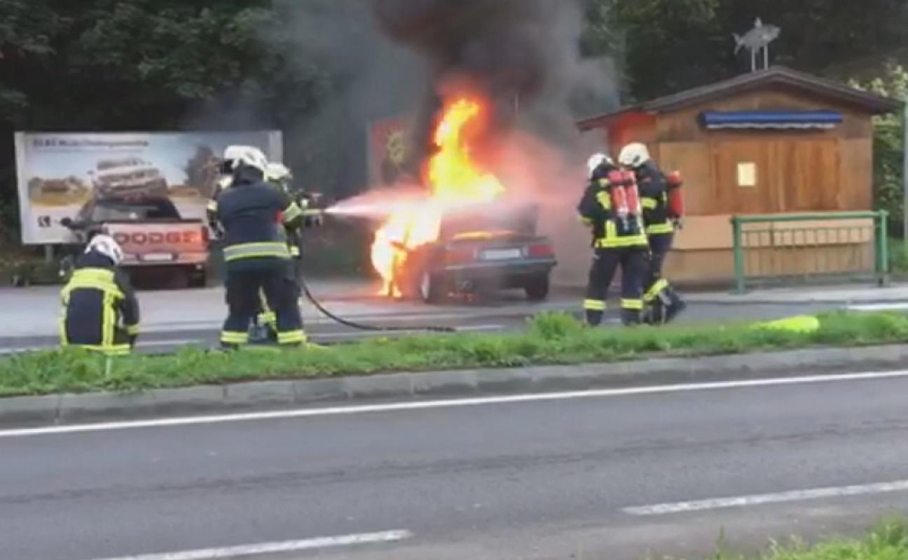 Auto auf Salzkammergutstraße in Altmünster in Flammen aufgegangen