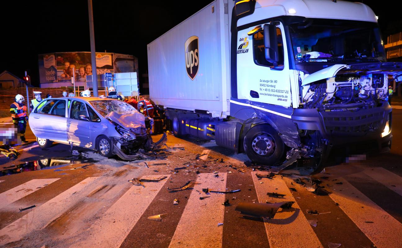 Heftige Kollision zwischen PKW und LKW in Wels-Pernau fordert zwei Schwerverletzte
