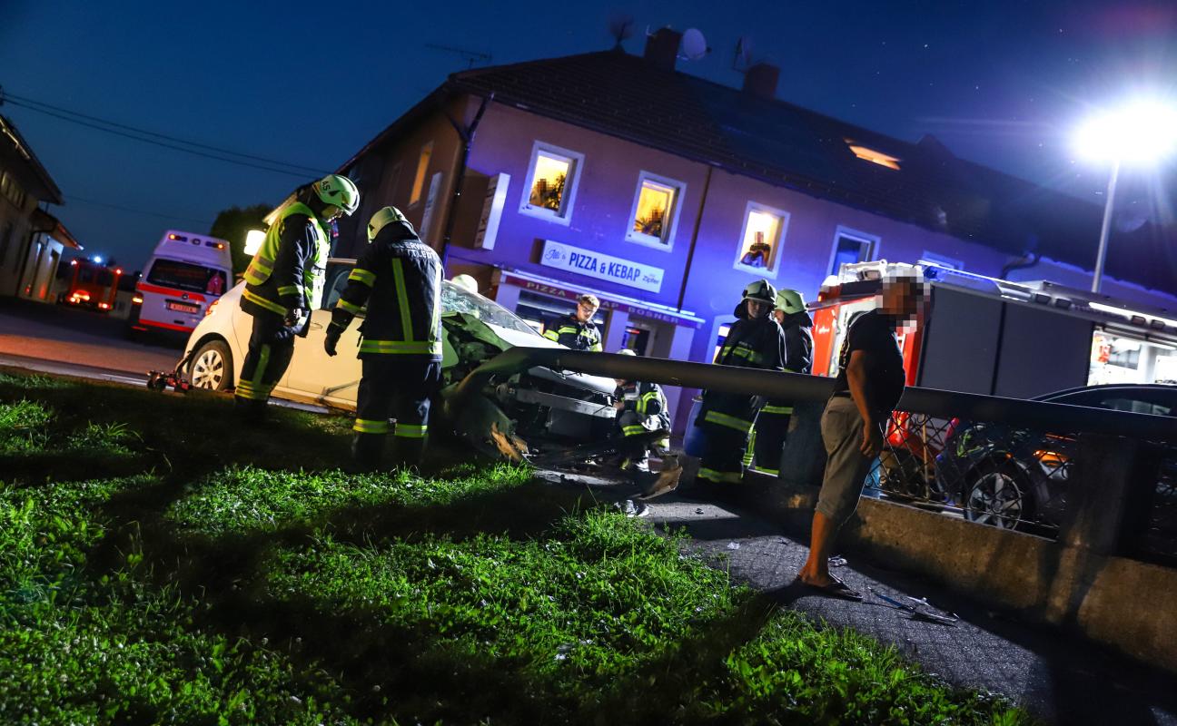 Auto bei Verkehrsunfall auf Voralpenstraße in Sattledt gegen Straßenlaterne gekracht