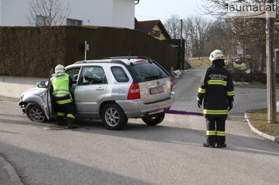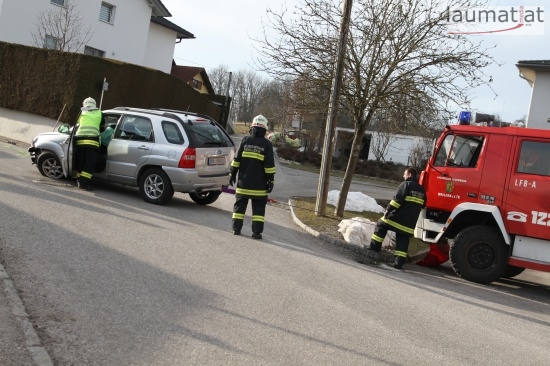 Glücklicherweise glimpflich endete für die Insassen zweier PKWs ein spektakulärer Verkehrsunfall im Ortsgebiet von Wallern an der Trattnach.
