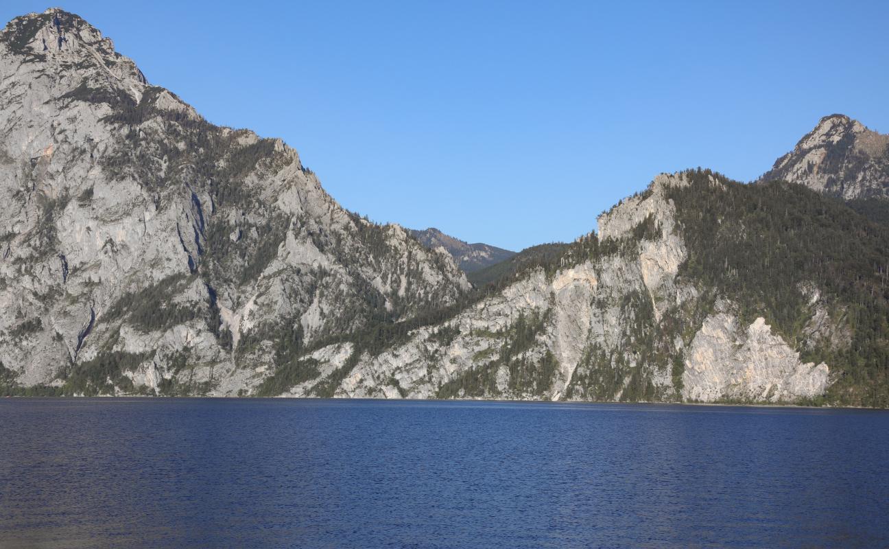 Einsatzkräfte löschen Waldbrand in alpinem Gelände am Kleinen Schönberg in Gmunden