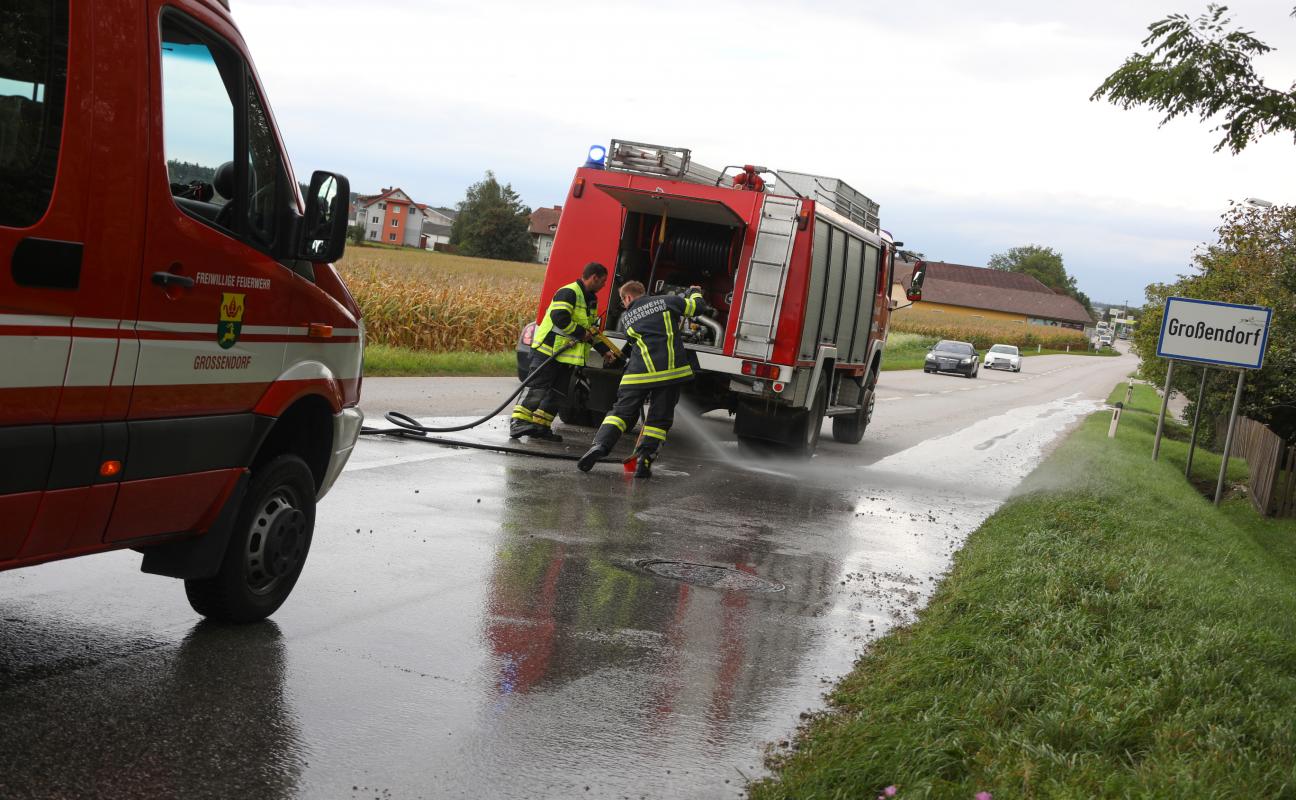 Feuerwehreinsatz: Mischwagen verlor auf Pyhrnpass Straße bei Ried im Traunkreis Beton