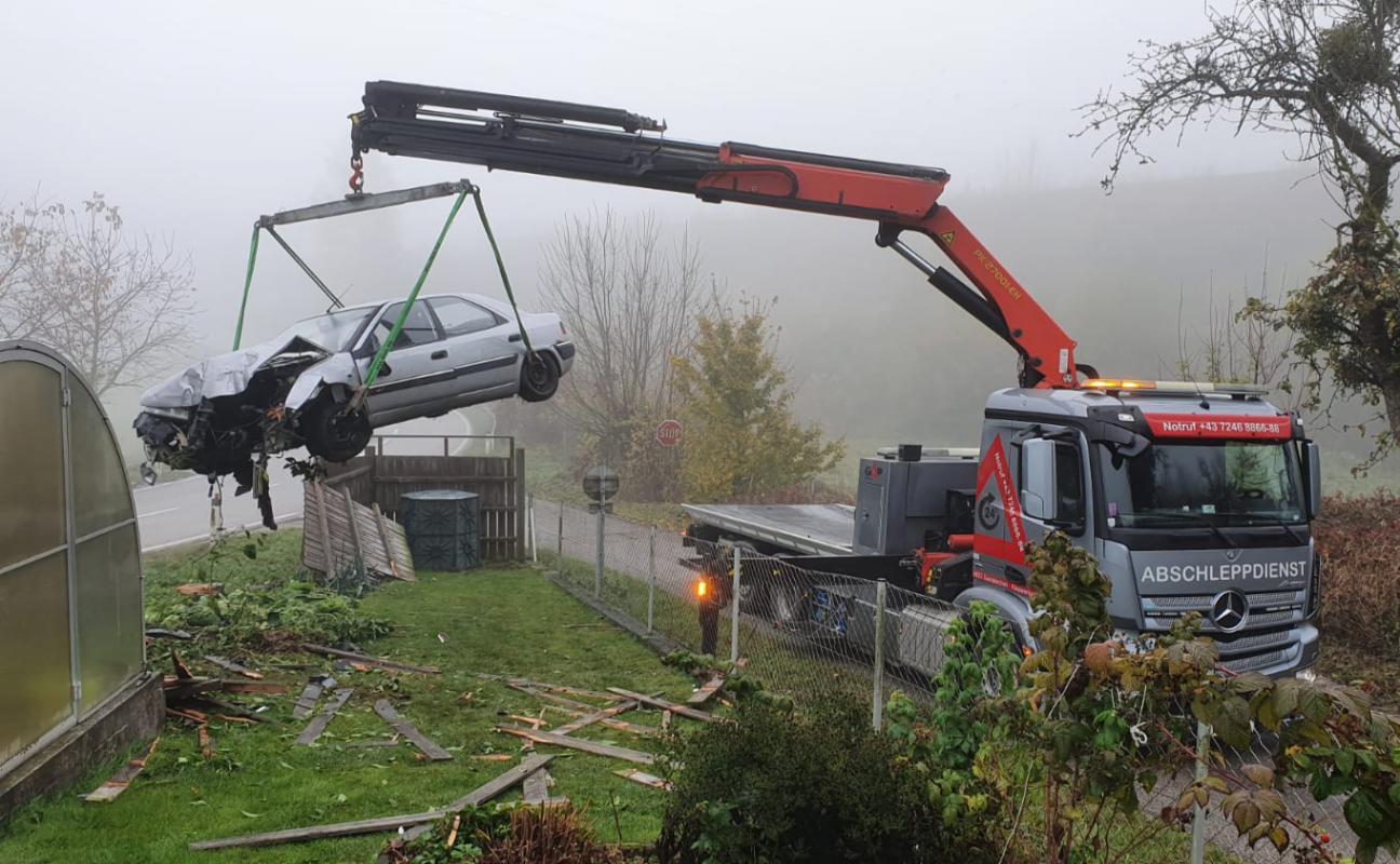 Auto bei Unfall in Krenglbach im Salatbeet gelandet