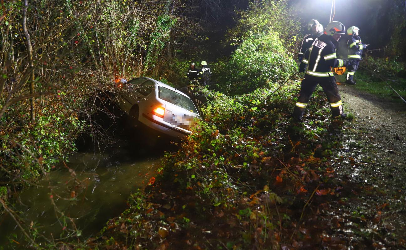 Auto landet bei Unfall in Bad Wimsbach-Neydharting im Wimbach