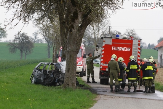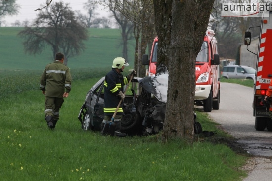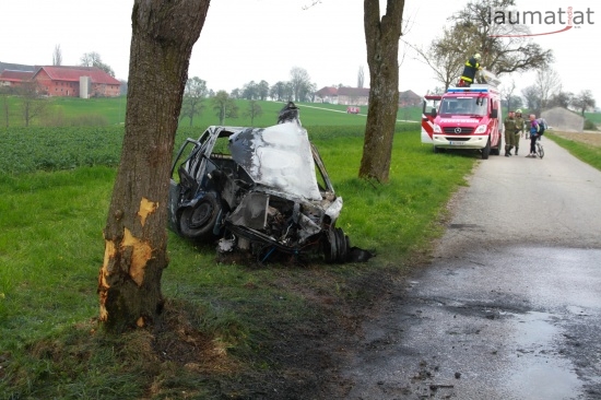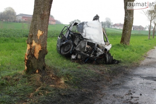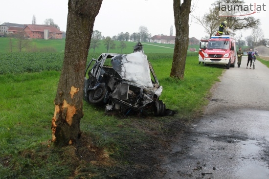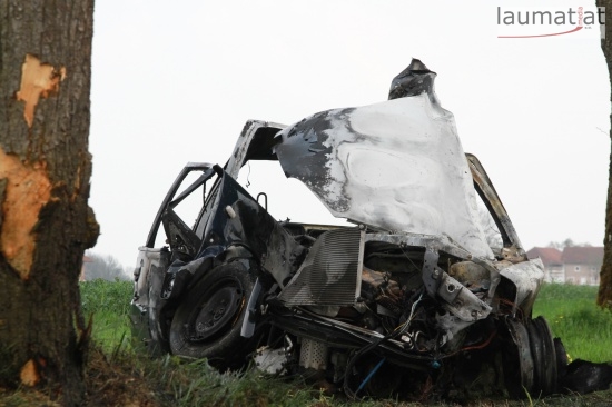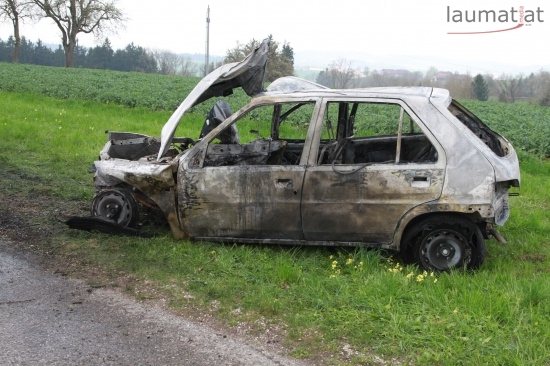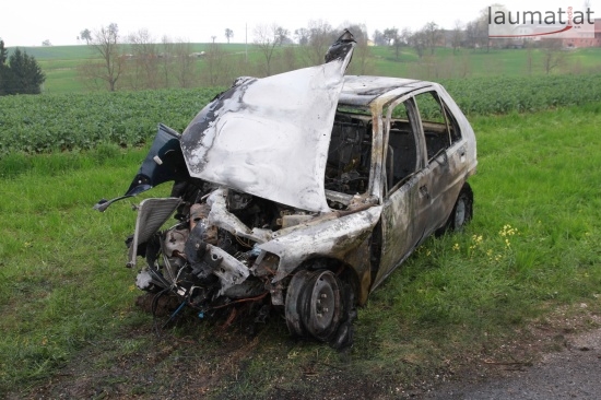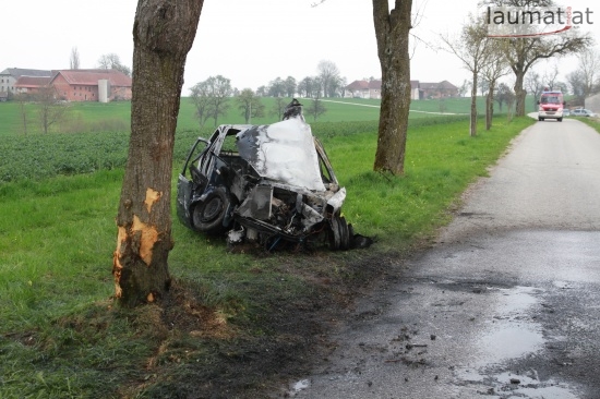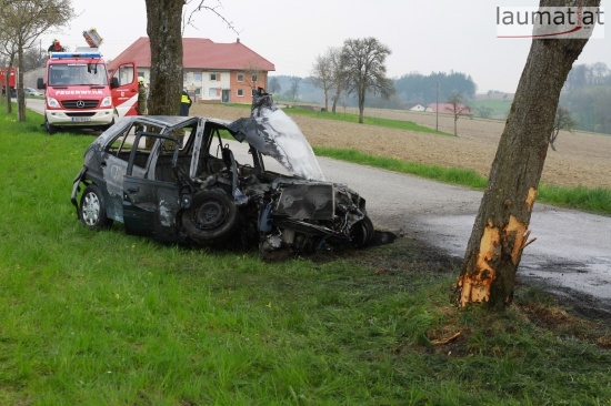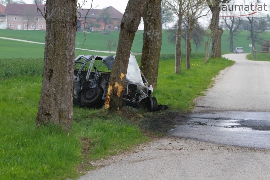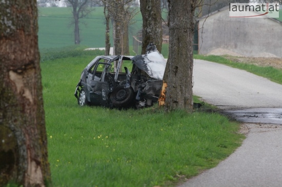 17-Jähriger krachte in Schlüßlberg mit PKW gegen einen Baum - Fahrzeug brannte aus