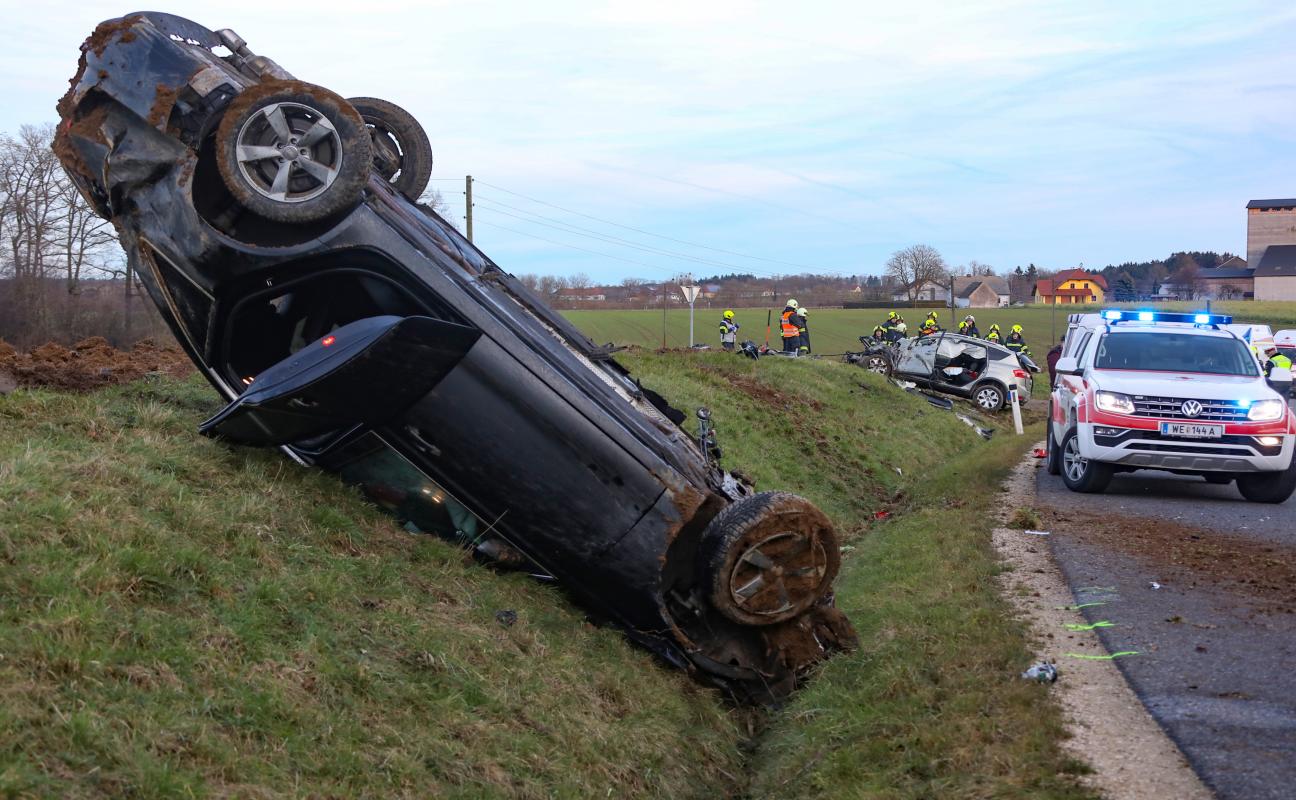 Spektakulärer Crash zwischen zwei Autos in Ried im Traunkreis fordert zwei Verletzte