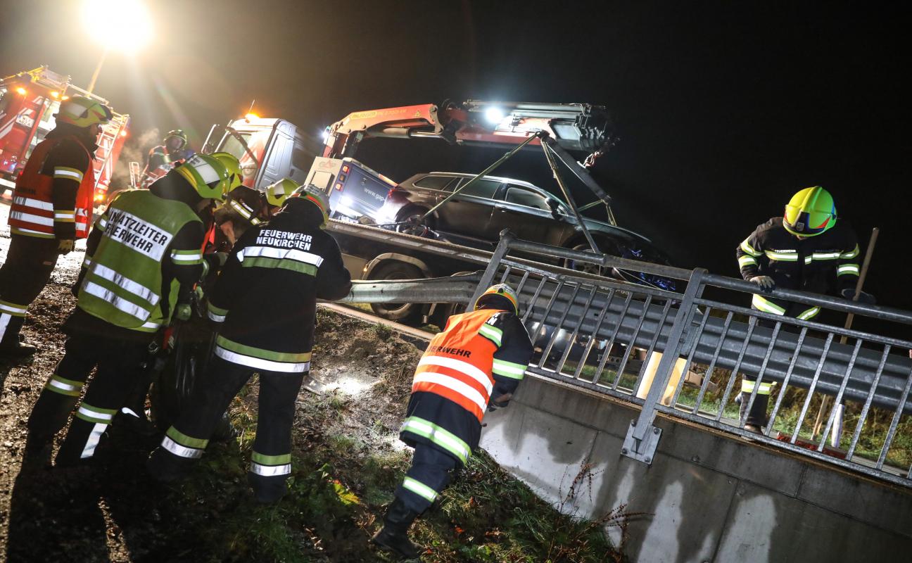 Auto bei Unfall in Neukirchen bei Lambach gegen Brückengeländer gekracht