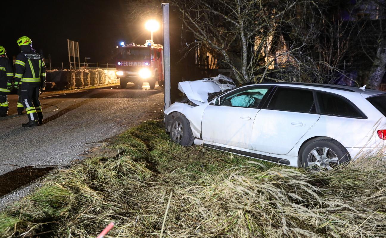 Auto bei Ried im Traunkreis in Lärmschutzwand gekracht