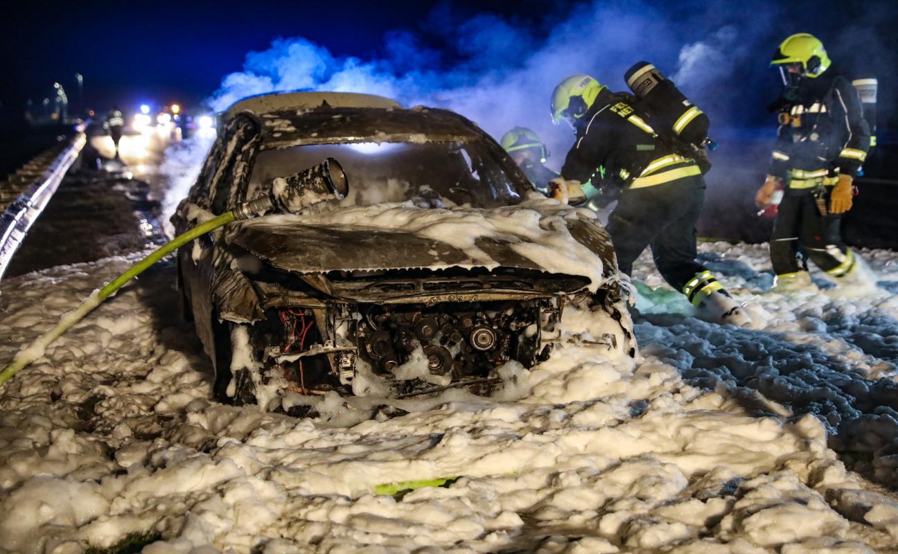 Auto auf der Welser Autobahn bei Weißkirchen an der Traun in Vollbrand