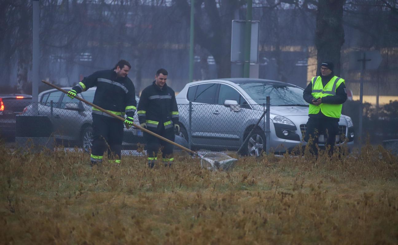 Hilfloser Schwan in Wels-Neustadt von der Feuerwehr eingefangen