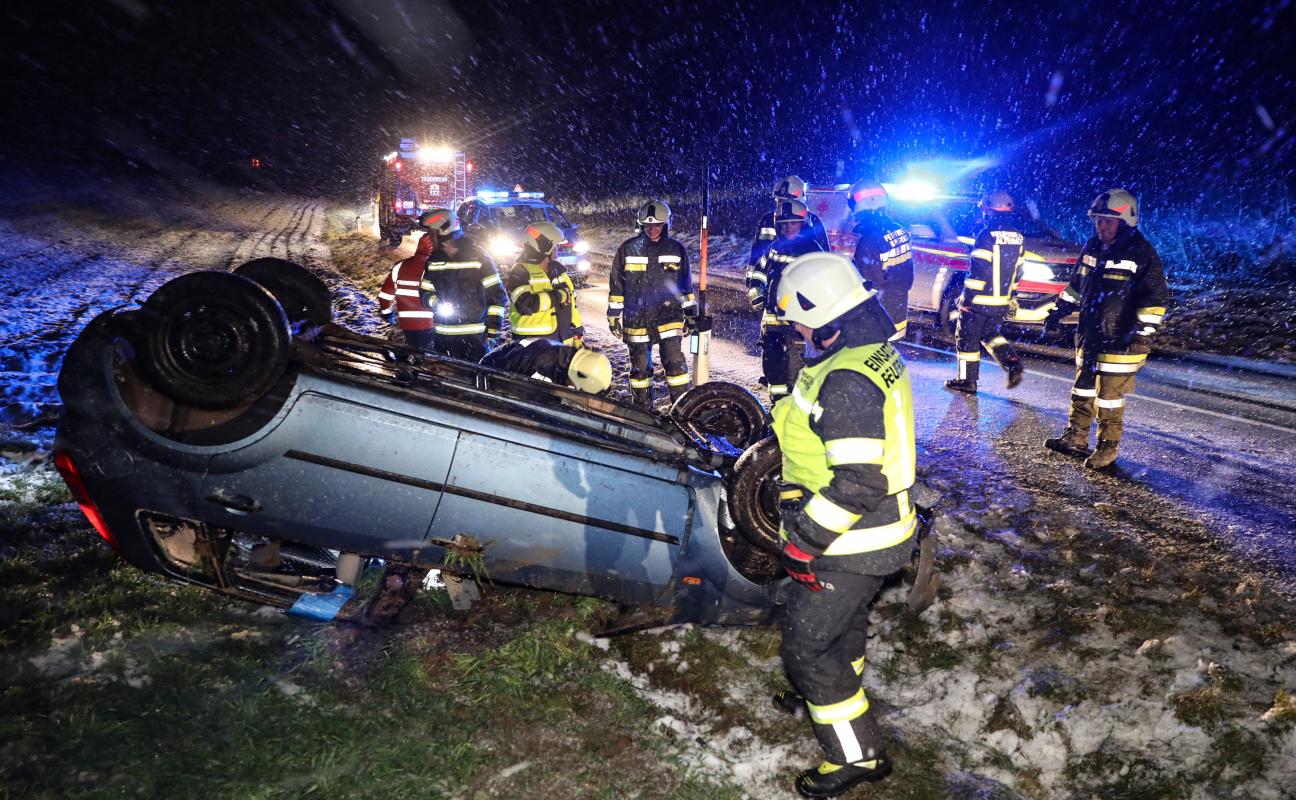 Autoüberschlag auf schneeglatter Fahrbahn in Gaspoltshofen fordert eine Verletzte