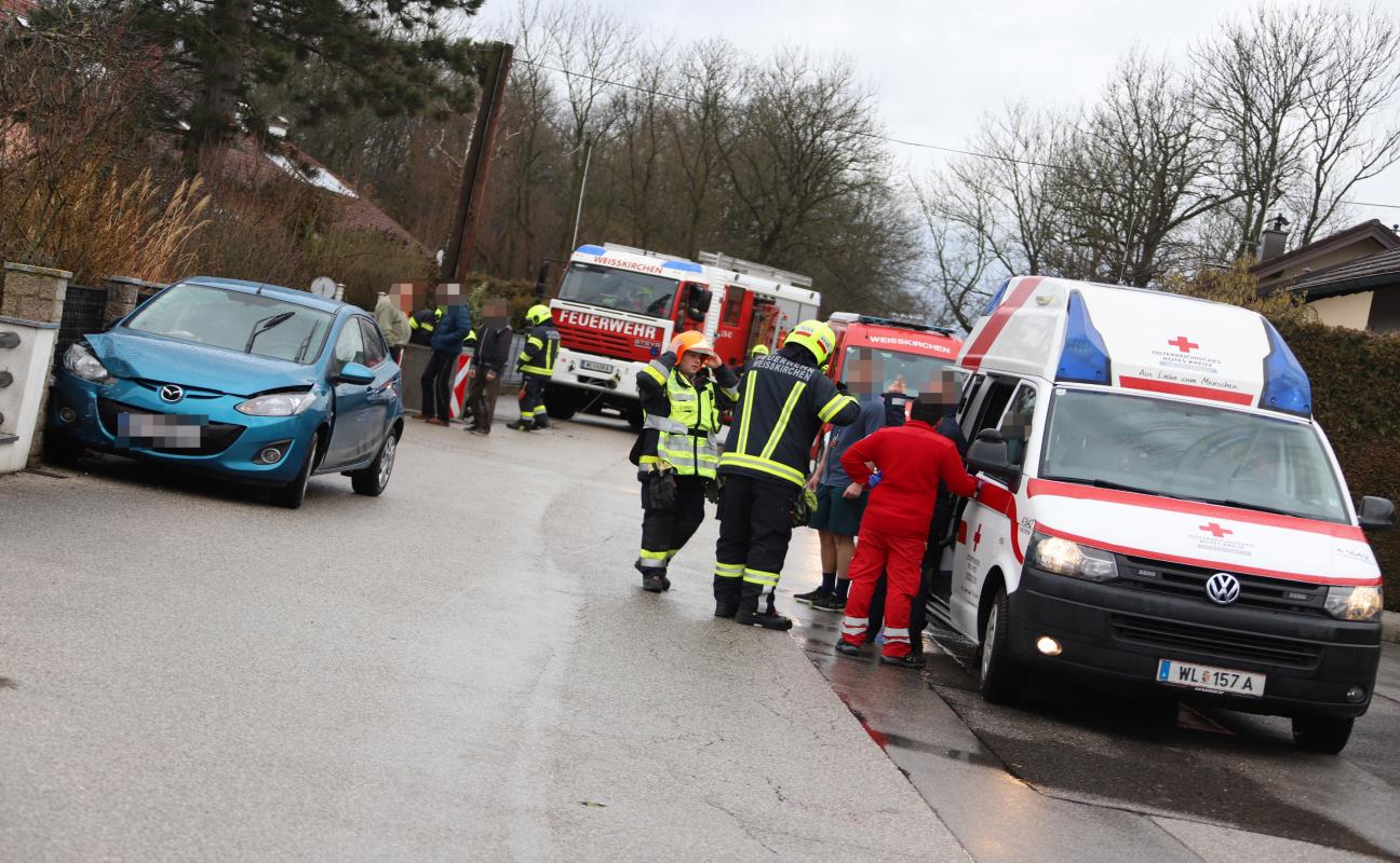 Autolenkerin touchiert in Weißkirchen an der Traun parkenden PKW, Betonring und Gartenzaun