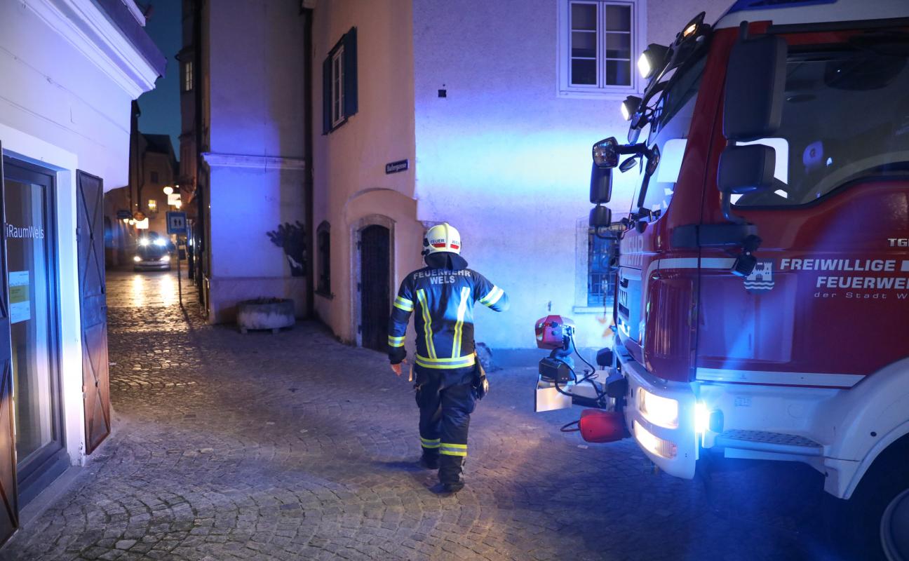 Feuerwehr bei Kabelbrand in einem Weinlokal in der Welser Altstadt im Einsatz