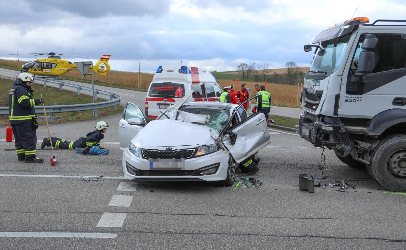 Schwerer Kreuzungscrash zwischen LKW und PKW in Allhaming