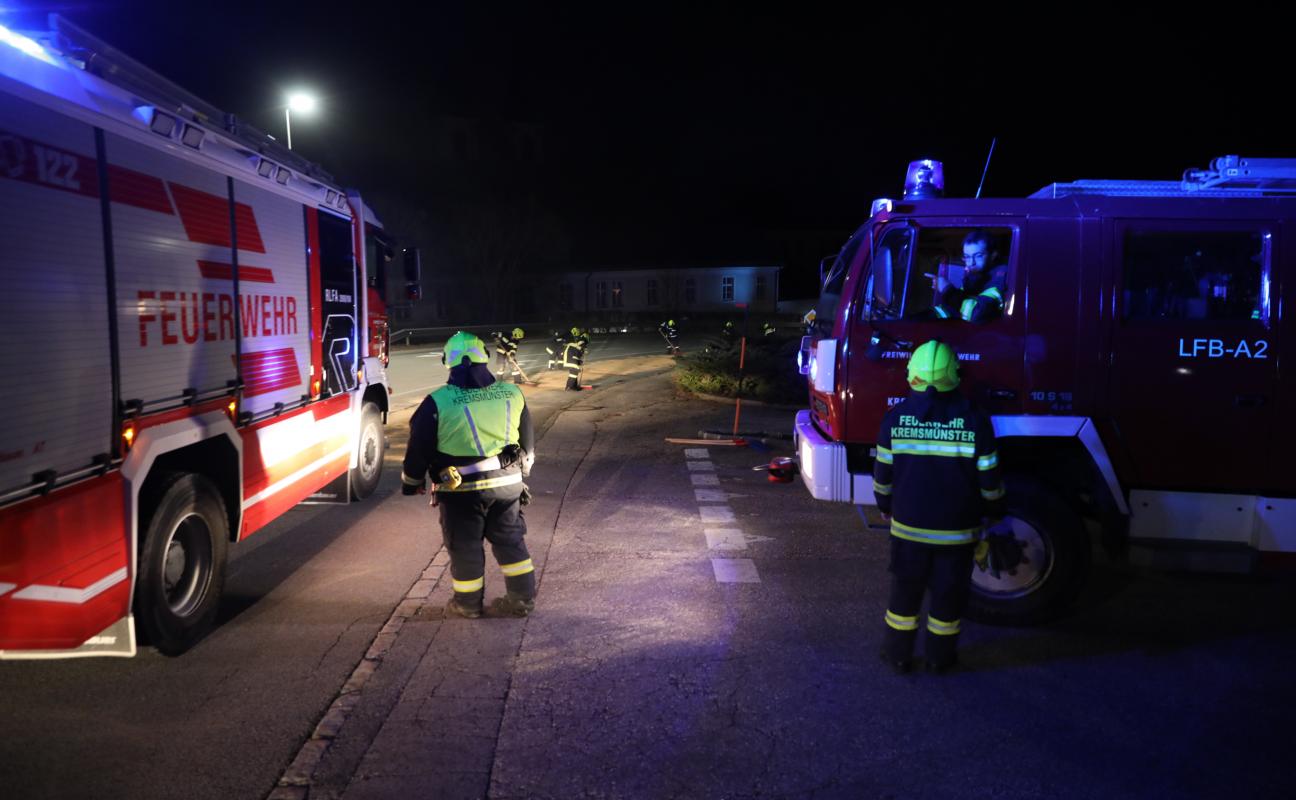 Umfangreicher Einsatz der Feuerwehr wegen intensiver Dieselspur auf Voralpenstraße in Kremsmünster