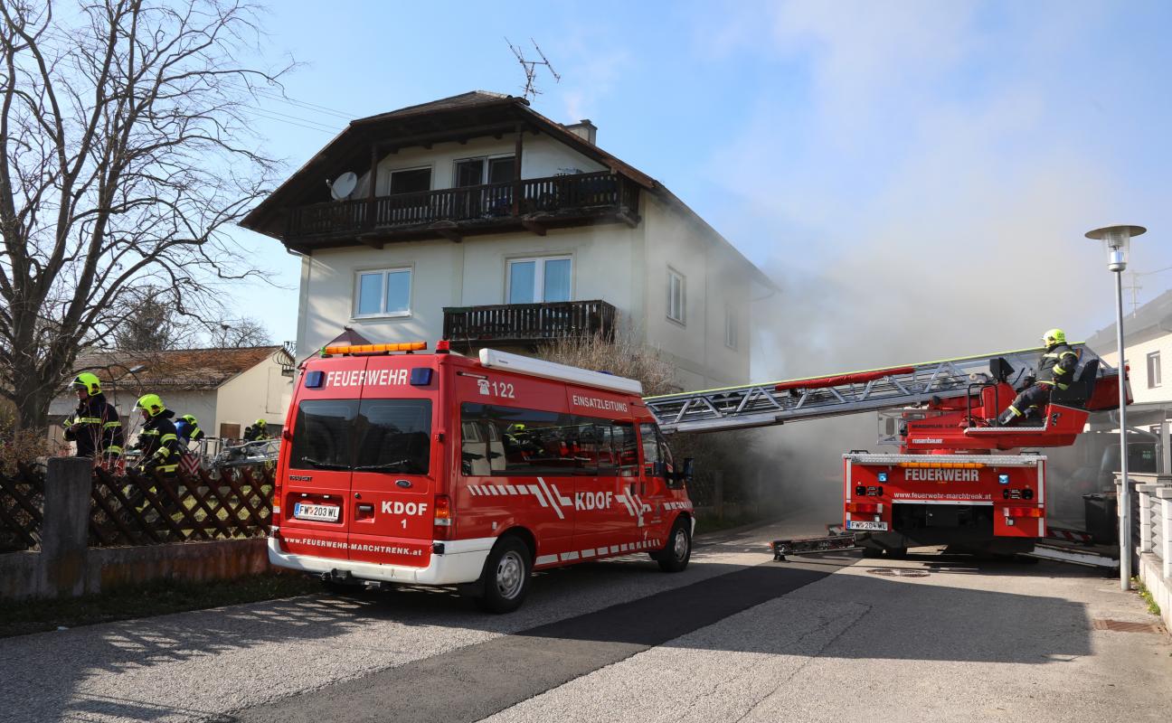 Einsatz der Feuerwehr bei Kellerbrand in einem Mehrfamilienhaus in Marchtrenk
