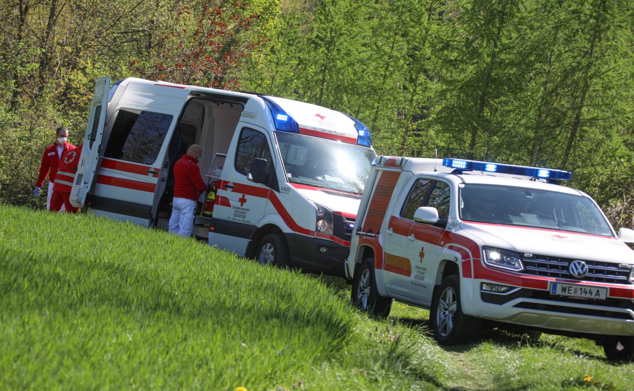 Einsatz bei Personenrettung aus unwegsamem Gelände nach internem Notfall in Wels-Waidhausen