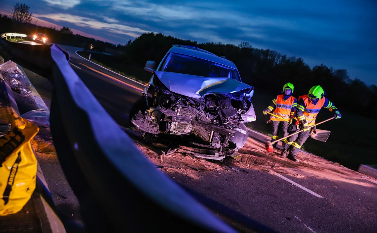 Auto kracht bei einer Brücke in Marchtrenk frontal gegen Leitschiene