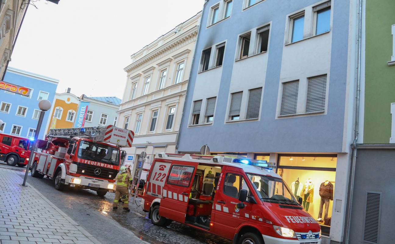 Wohnungsbrand im Stadtzentrum von Ried im Innkreis sorgt für größeren Einsatz der Feuerwehr