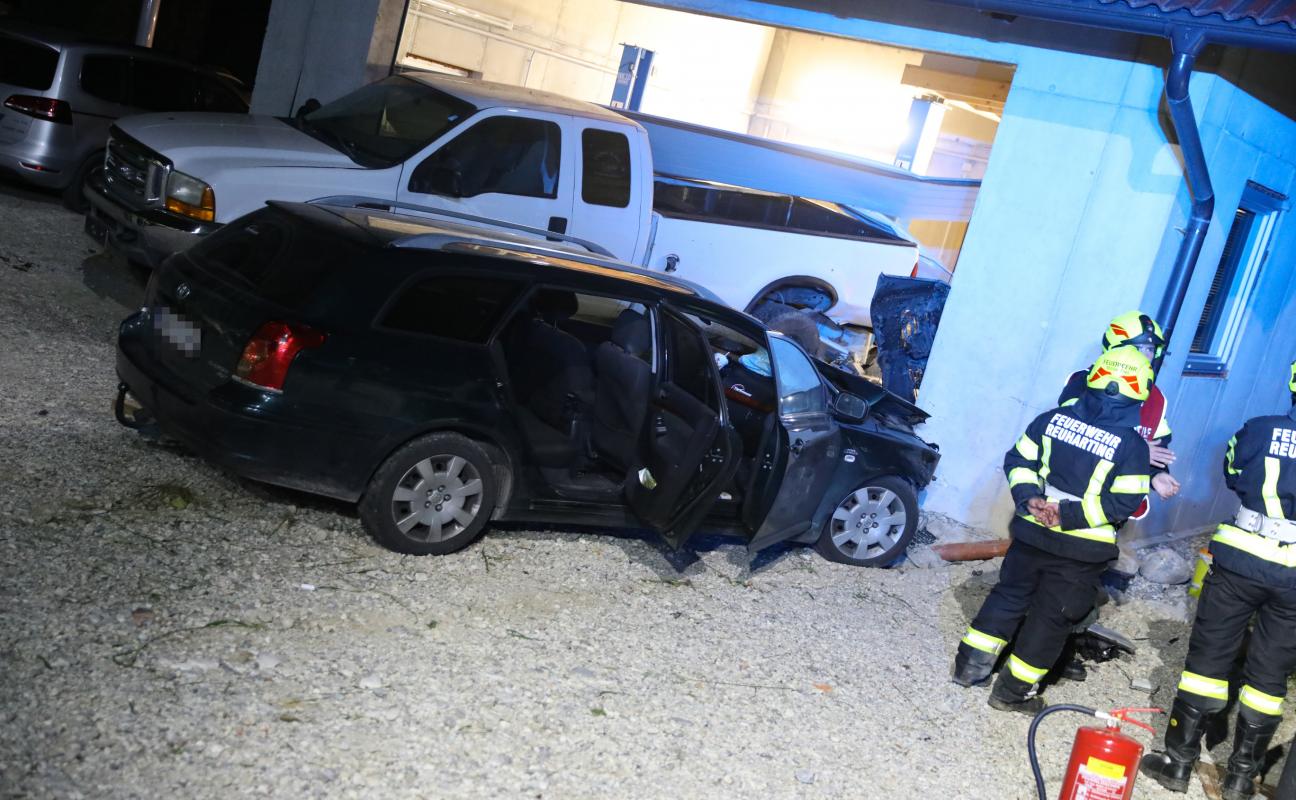 Auto mit Jugendlichen schleuderte bei Unfall in Steinerkirchen an der Traun gegen Pick-up und Garage