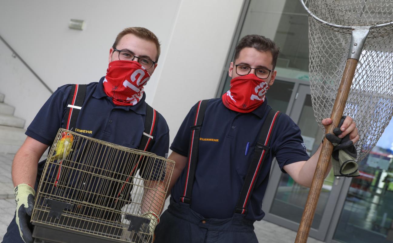 Vogel im Klassenzimmer: Feuerwehr in einer Schule in Wels-Vogelweide auf Vogelfang