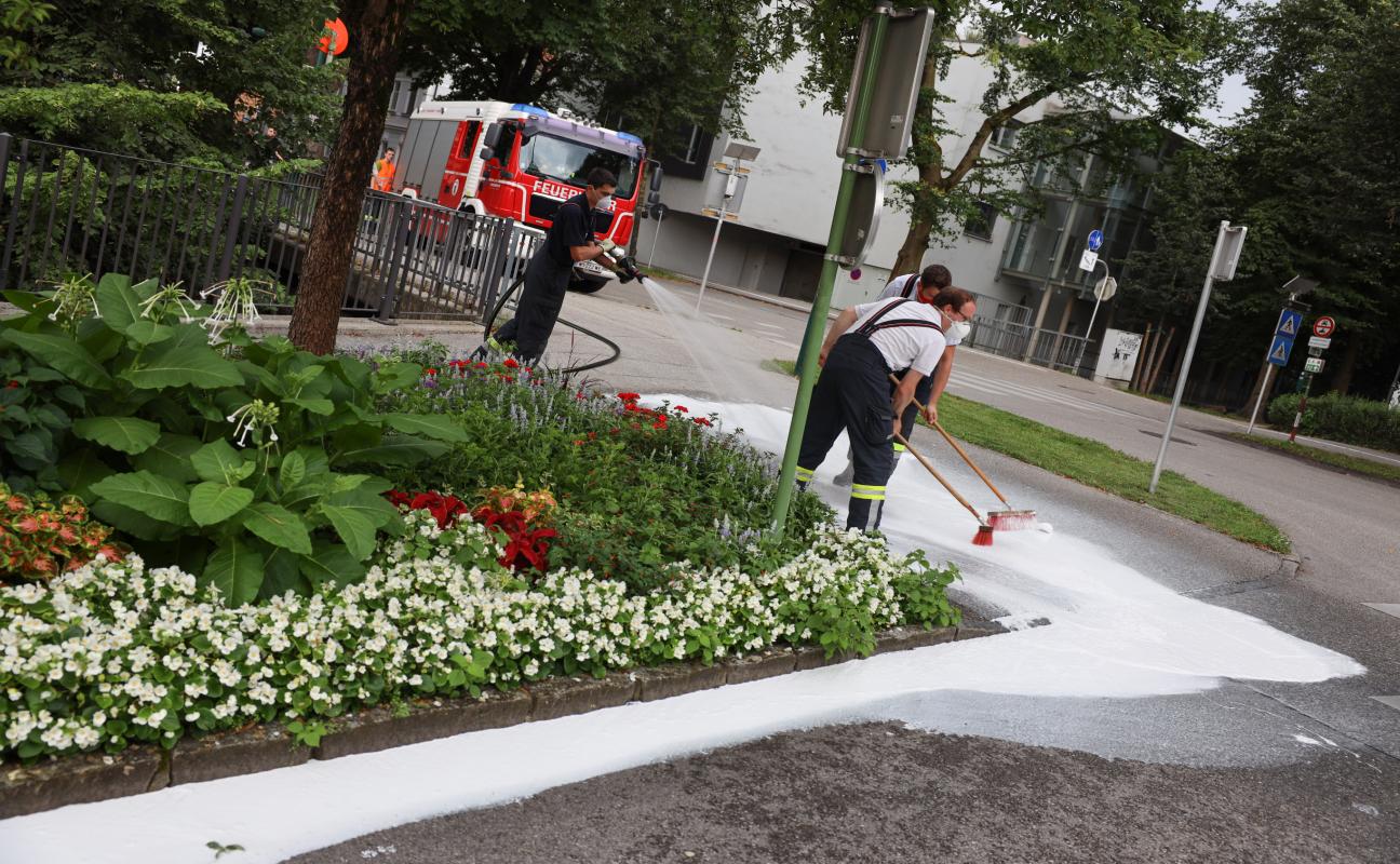 Verunglückter Farbkübel löst Reinigungseinsatz der Feuerwehr in Wels-Innenstadt aus