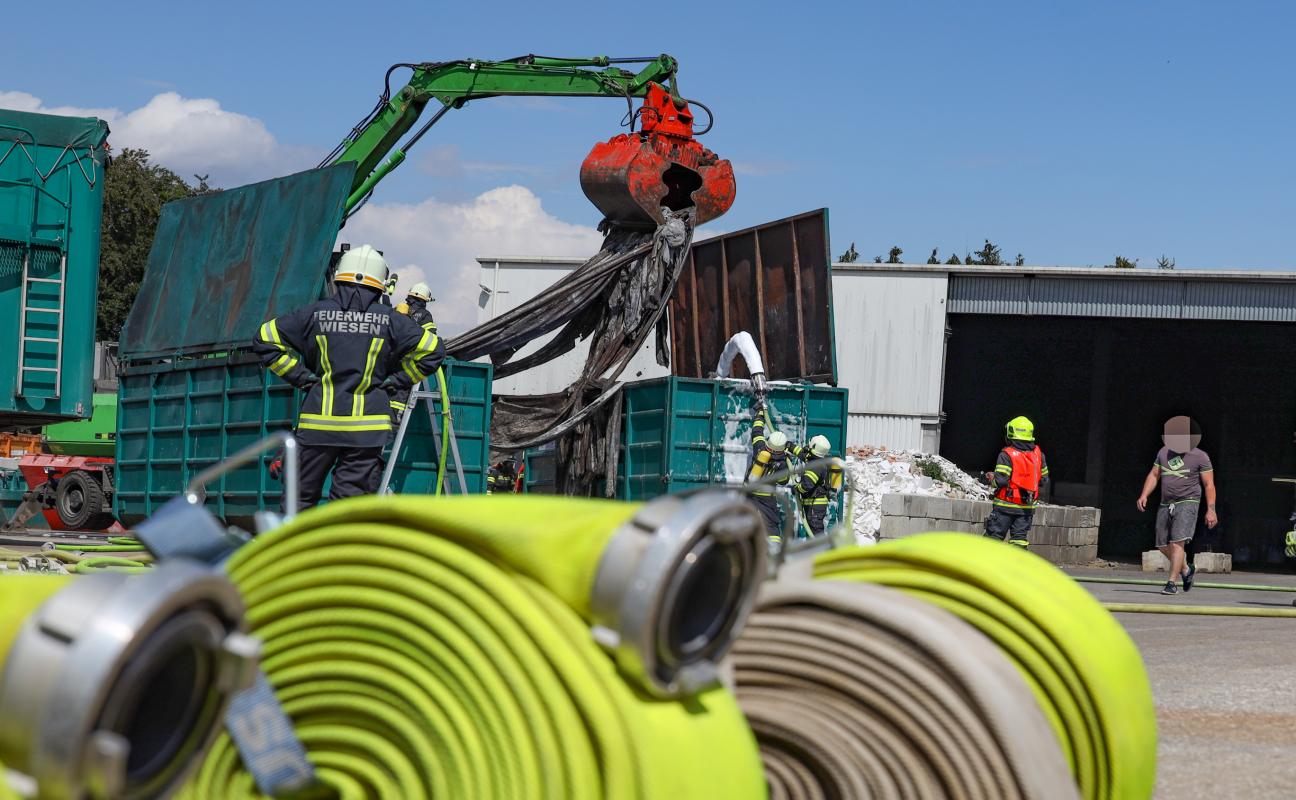Drei Feuerwehren bei Brand von Filtertüchern bei Entsorgungsunternehmen in Pinsdorf im Einsatz