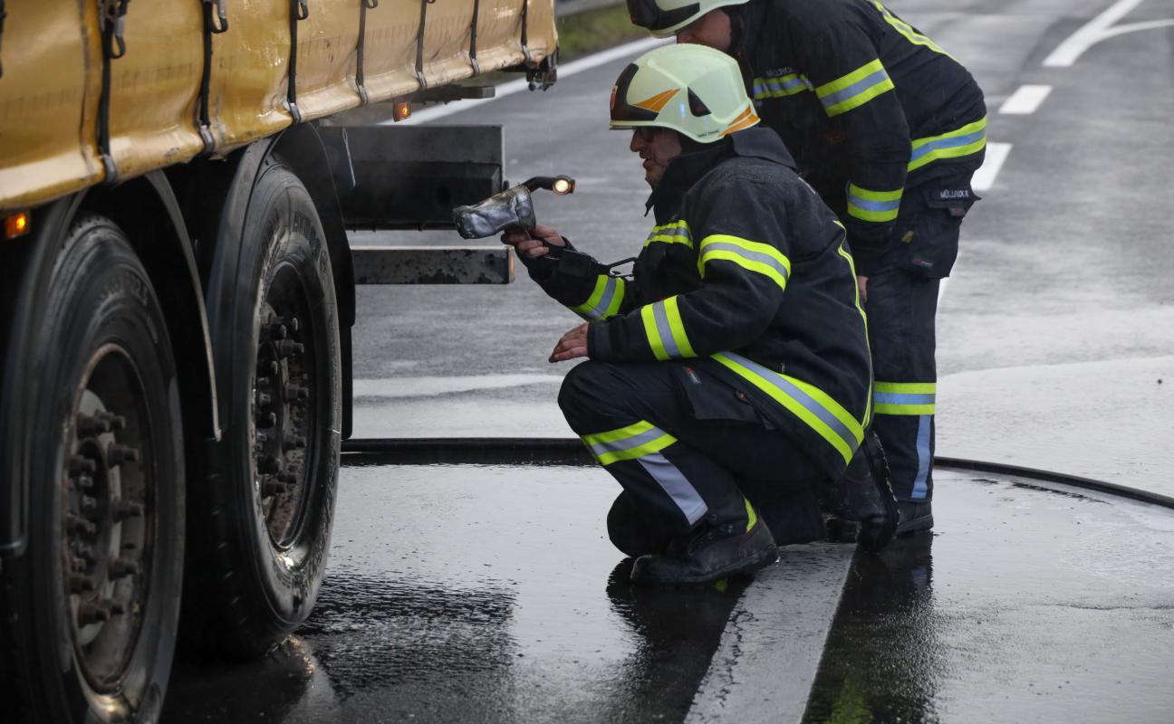 Überhitzt: Feuerwehr bei gemeldetem Brand an einem LKW auf Raststation in Sattledt im Einsatz