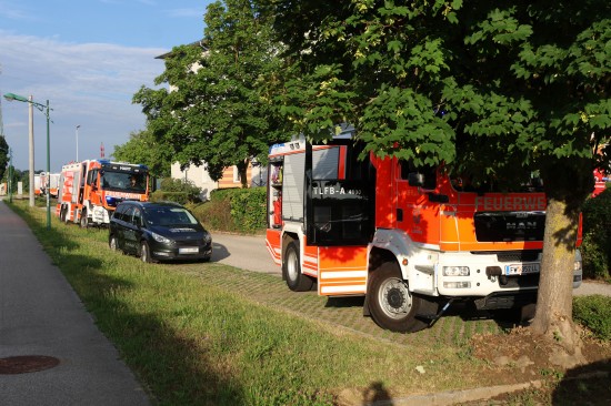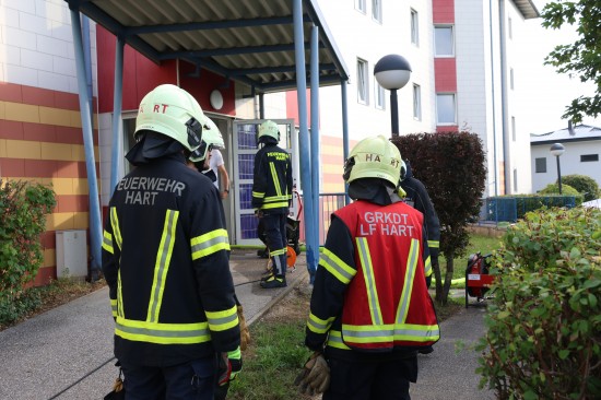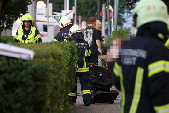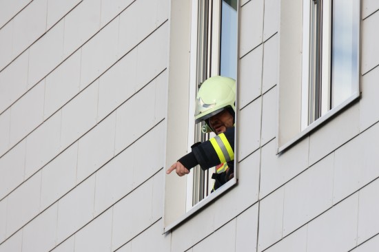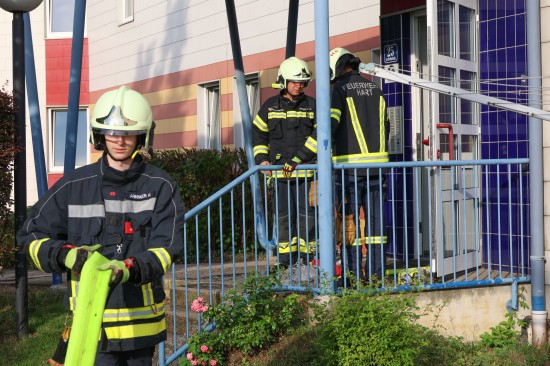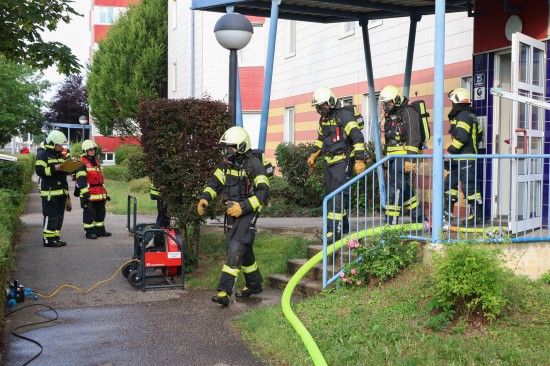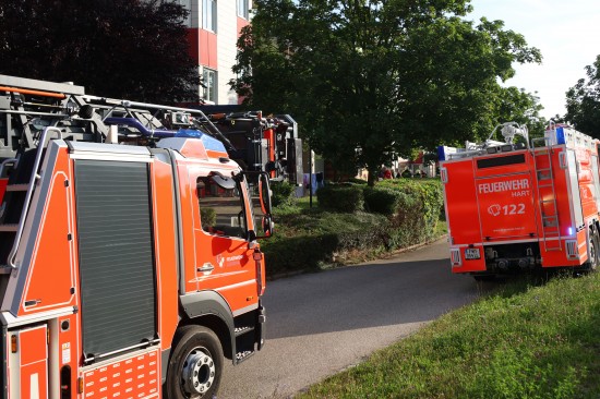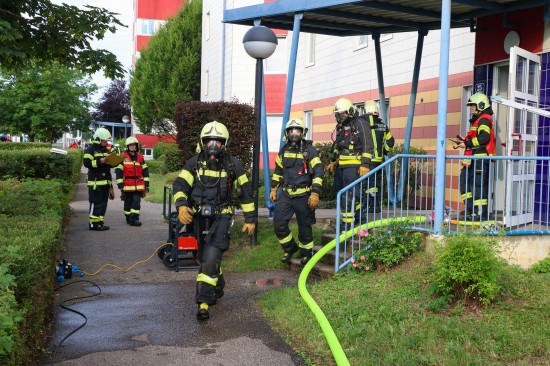 Vier Feuerwehren bei Brand in einer Wohnung eines Mehrparteienwohnhauses in Leonding im Einsatz