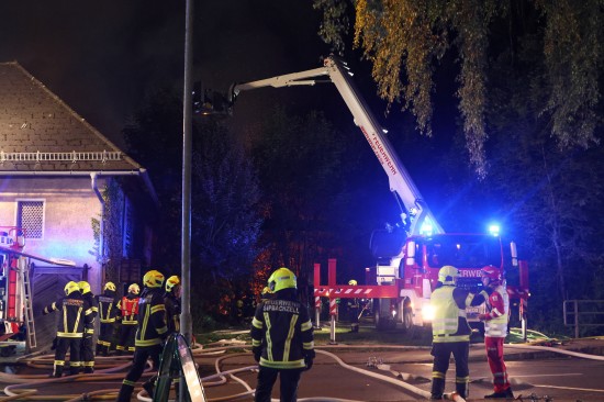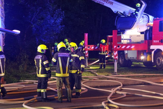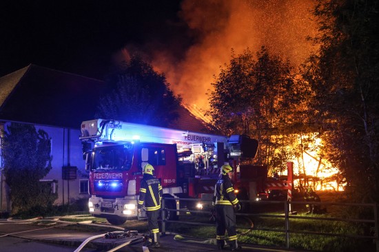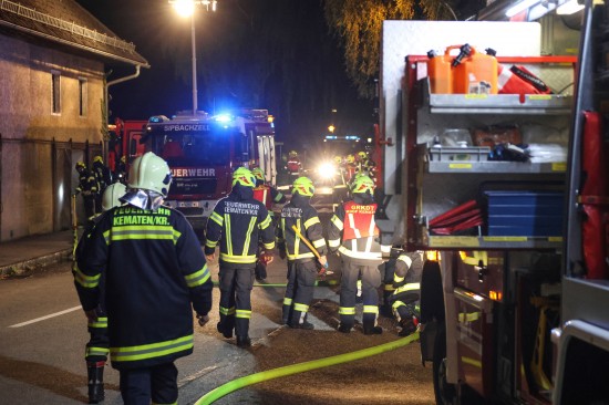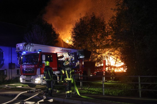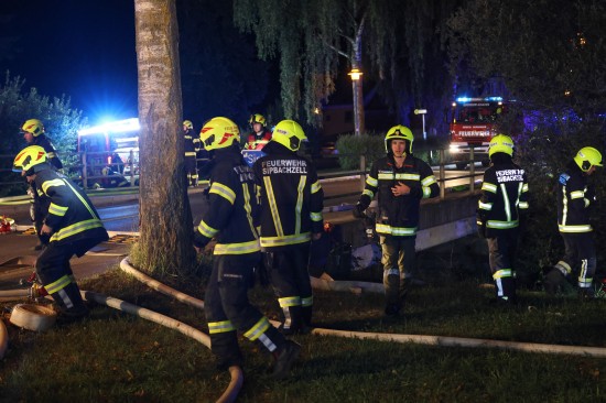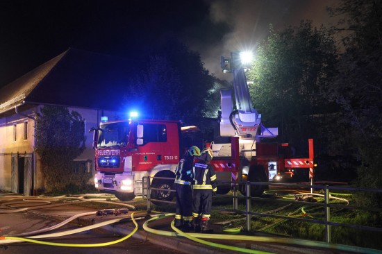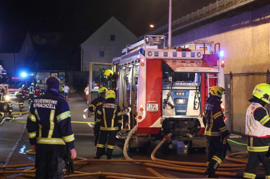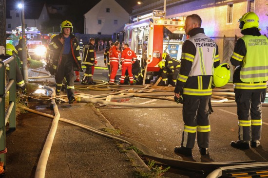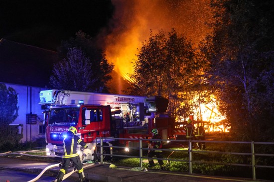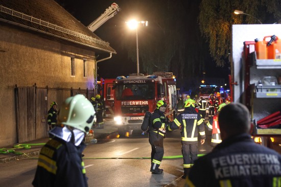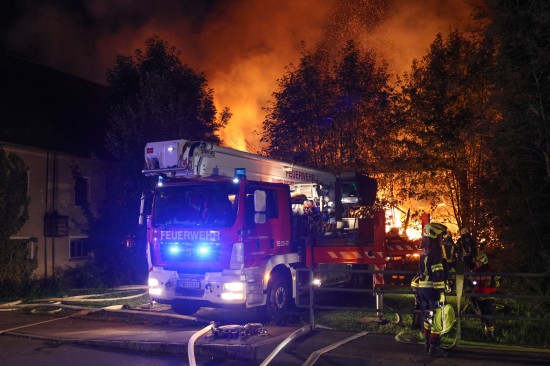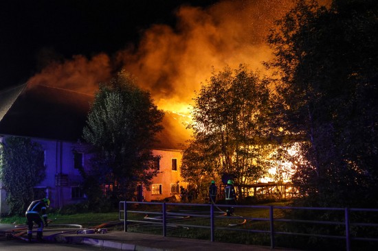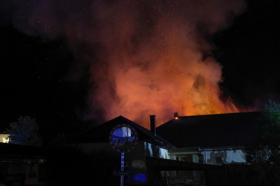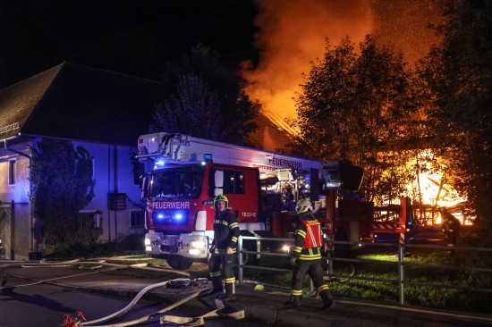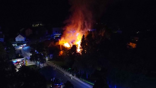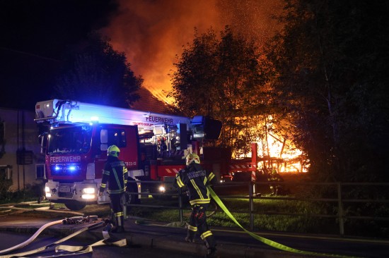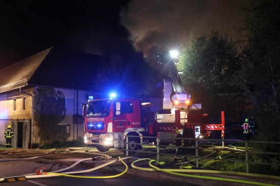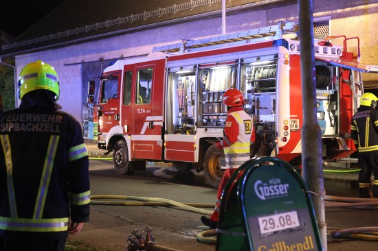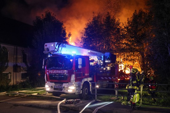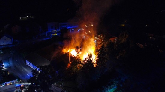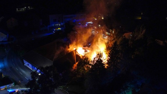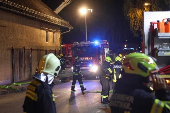Großbrand: 13 Feuerwehren bei Brand eines alten Sägewerks im Ortszentrum von Sipbachzell im Einsatz
