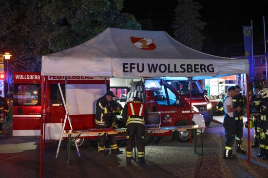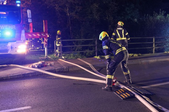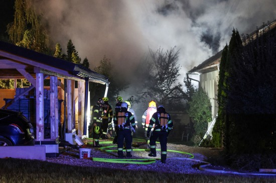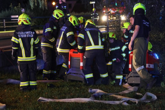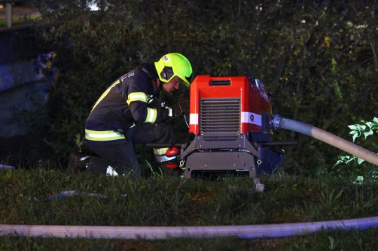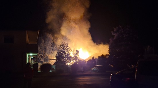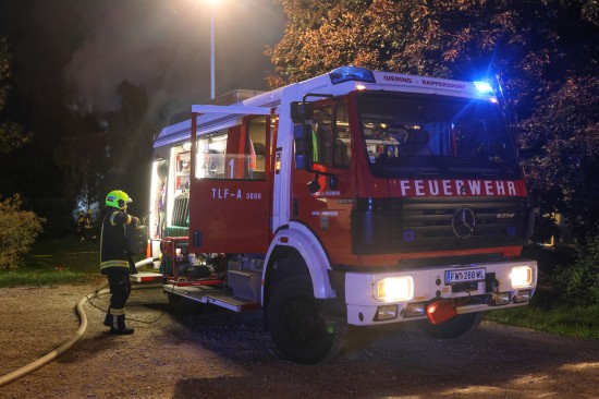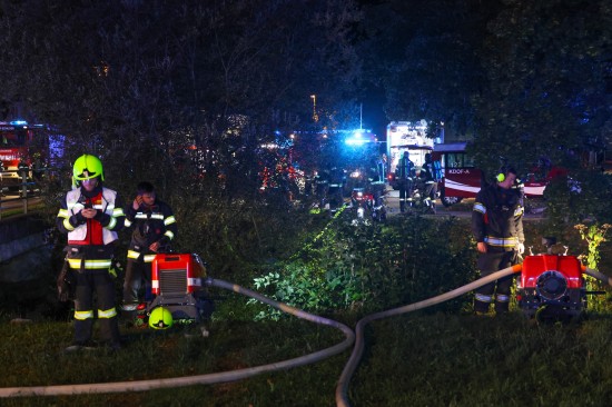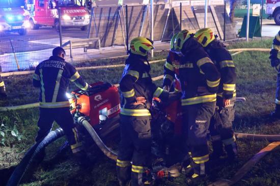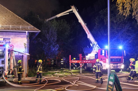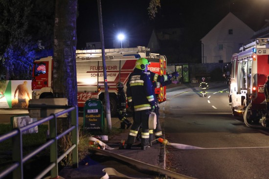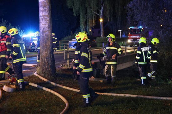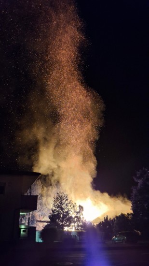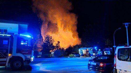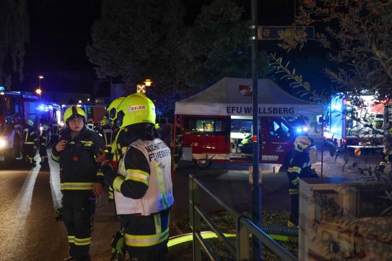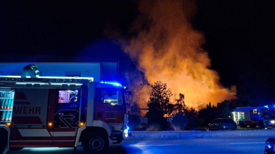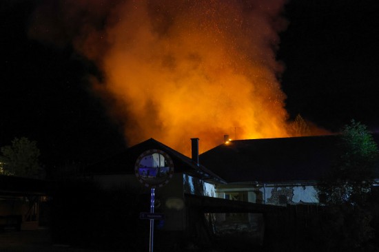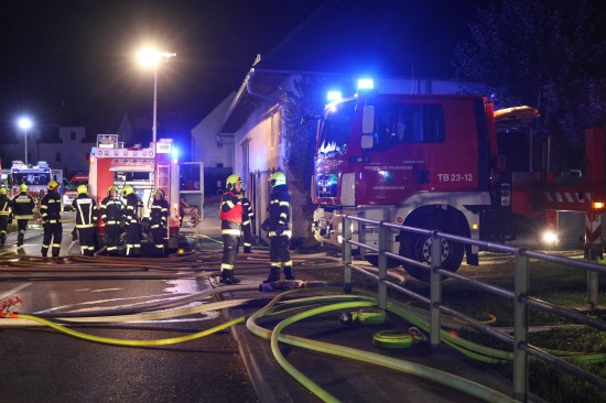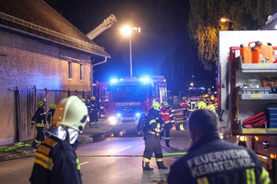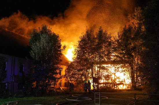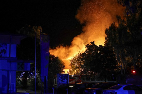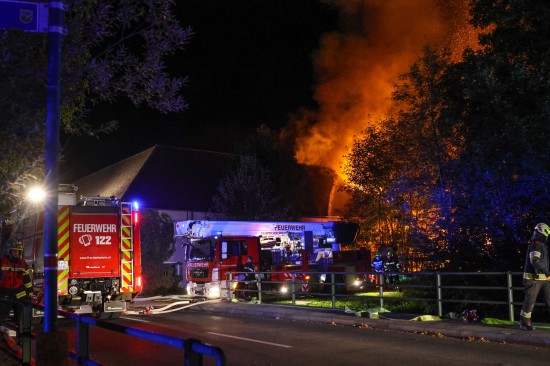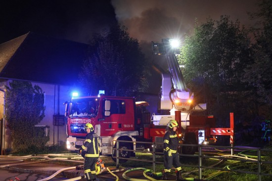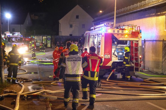 Großbrand: 13 Feuerwehren bei Brand eines alten Sägewerks im Ortszentrum von Sipbachzell im Einsatz