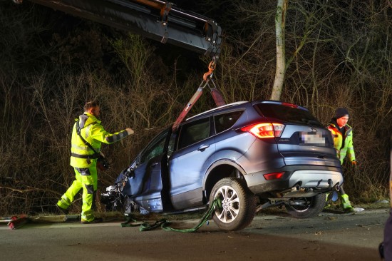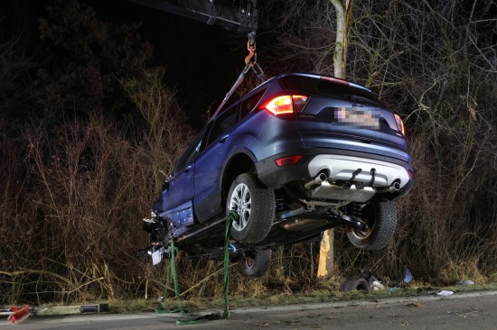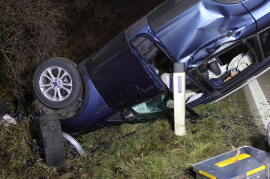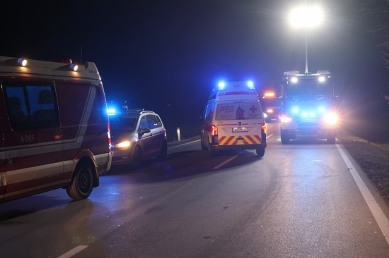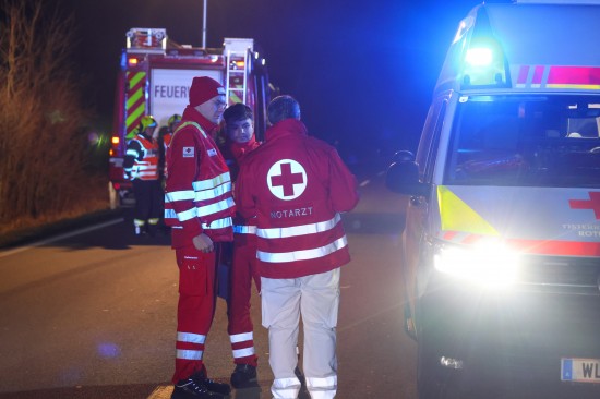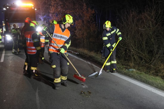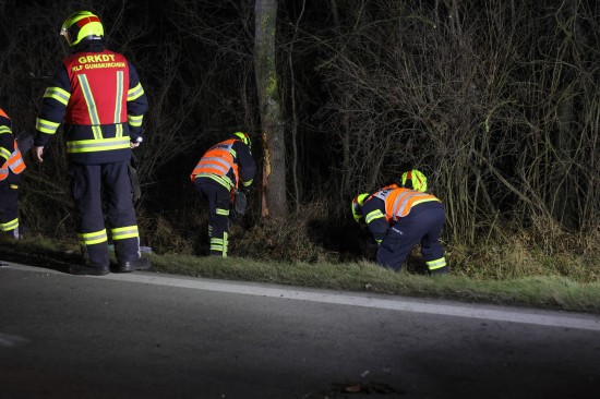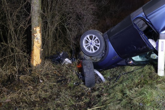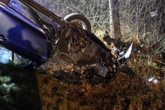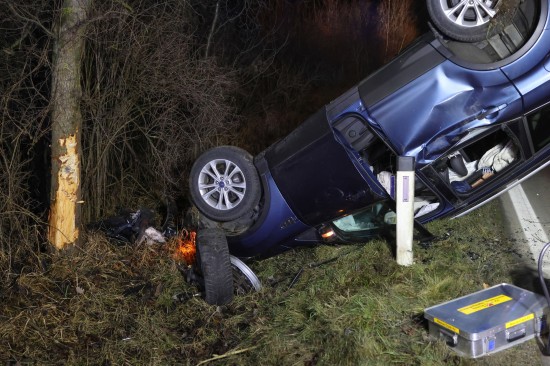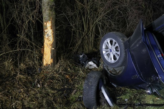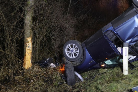 In Gunskirchen (Bezirk Wels-Land) ist am späten Freitagabend ein Auto von der B1 Wiener Straße abgekommen, gegen einen Baum geprallt und hat sich dann überschlagen.
