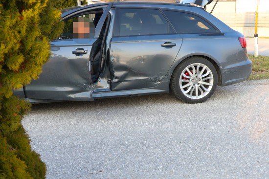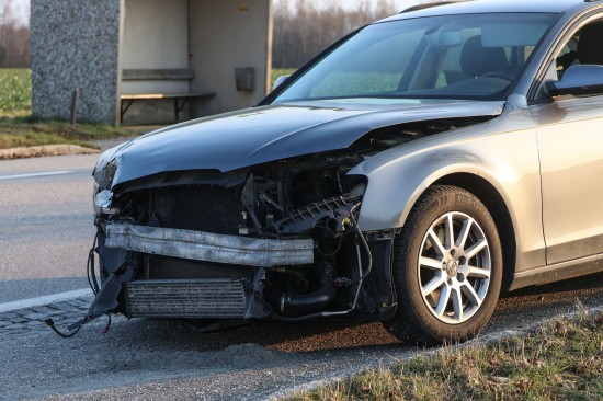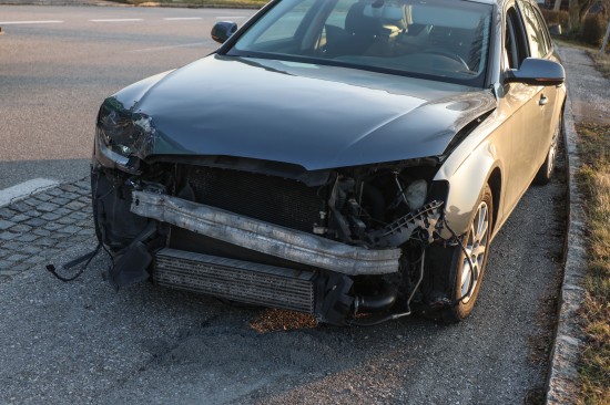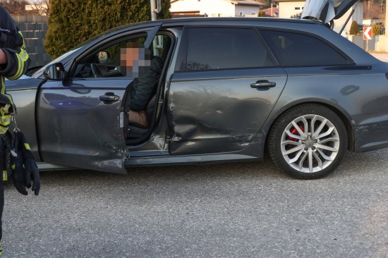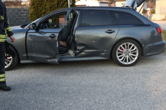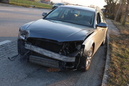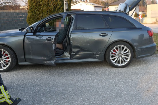 Aufräumarbeiten nach Kreuzungsunfall zwischen zwei PKW in Steinerkirchen an der Traun