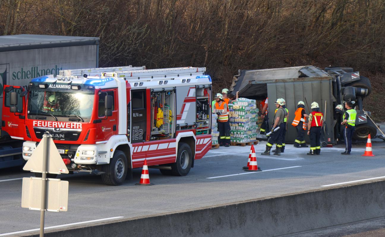 Totalsperre: LKW-Anhänger mit Mehlpackungen auf Westautobahn bei Sipbachzell umgestürzt