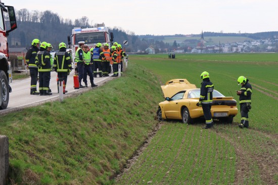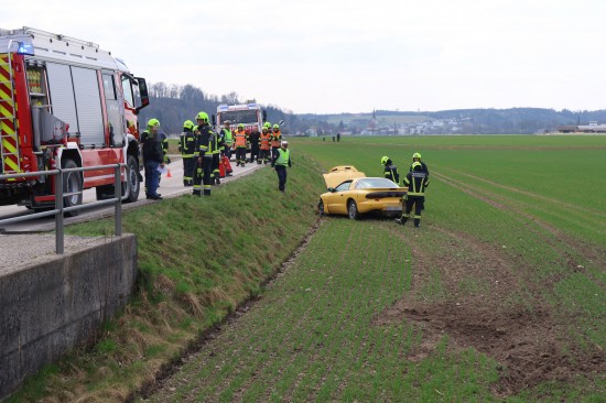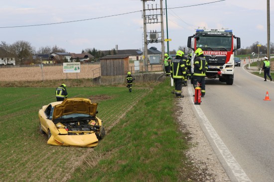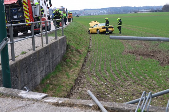 Ein Auto kam auf der L563 Traunuferstraße, Puckinger Straße auf Höhe der Kreuzung mit der Puckinger Straße und Untersinnersdorf, im Gemeindegebiet von Weißkirchen an der Traun, von der Straße ab. Der PKW touchierte einen Leitpflock, einen Kanaldeckel, rammte ein Geländer und kam dann im darunterliegenden Feld zum Stillstand. Eine Person wurde bei dem Unfall leicht verletzt und von der Rettung versorgt. Die Feuerwehr wurde zu den Aufräumarbeiten alarmiert. Ein Abschleppunternehmen wurde zur Bergung des verunfallten Fahrzeuges angefordert.