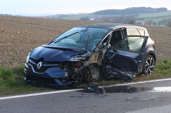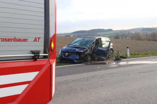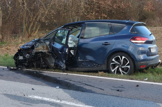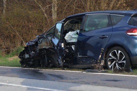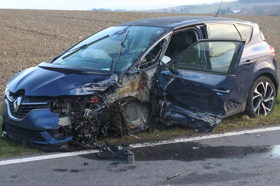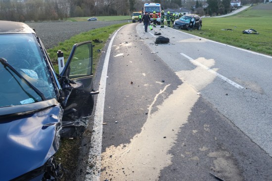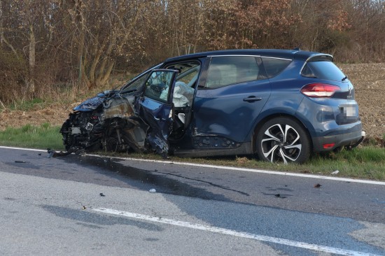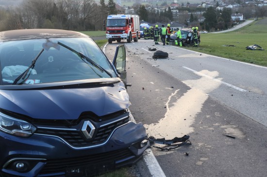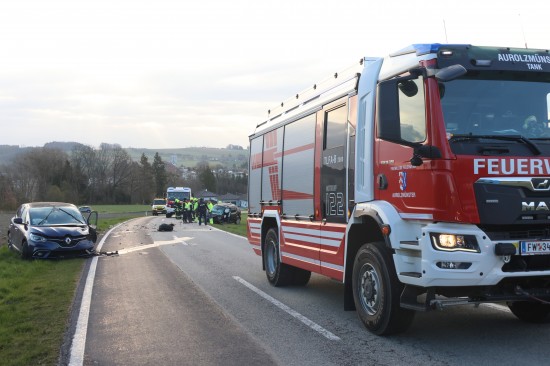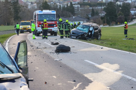Schwerer Frontalcrash zweier Autos bei Aurolzmünster fordert zwei Verletzte