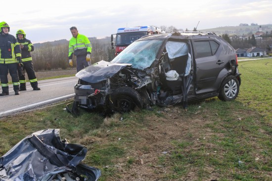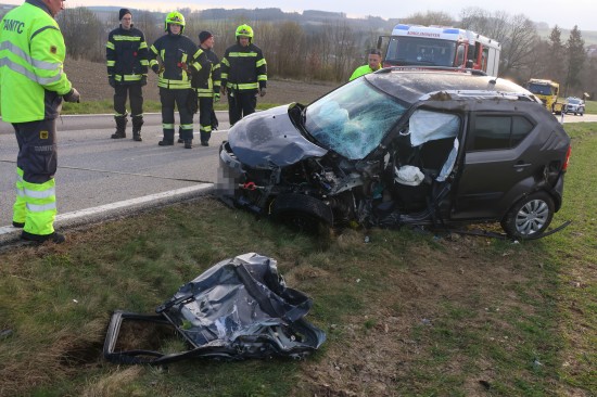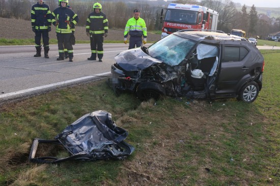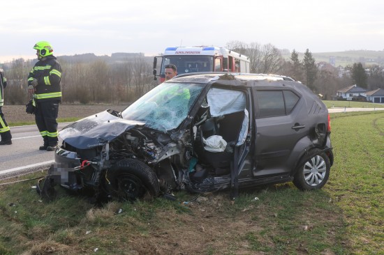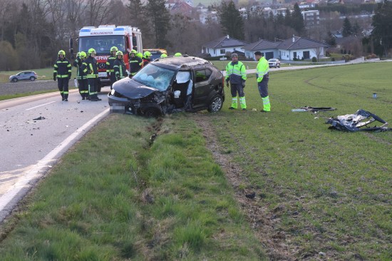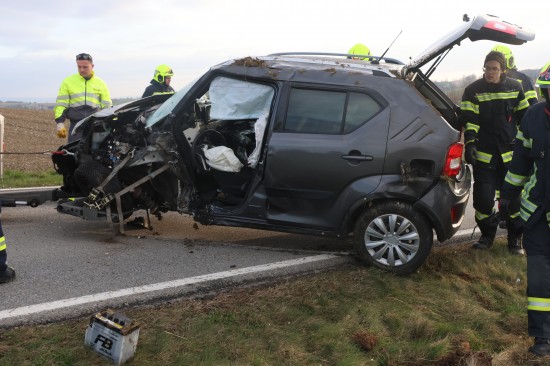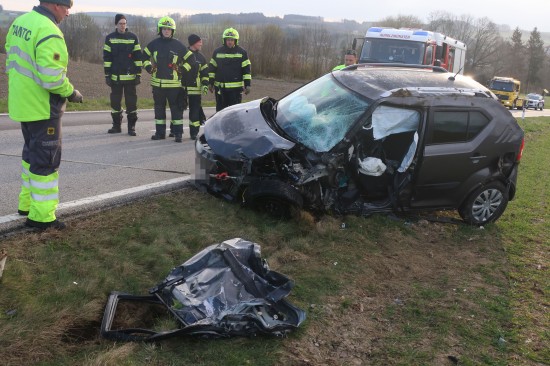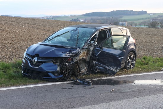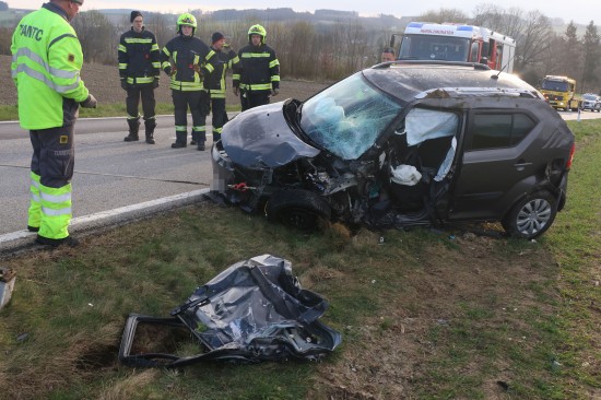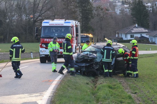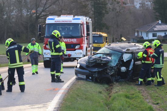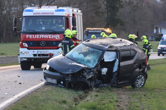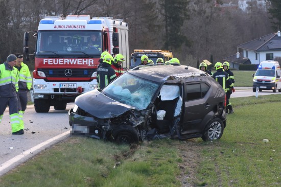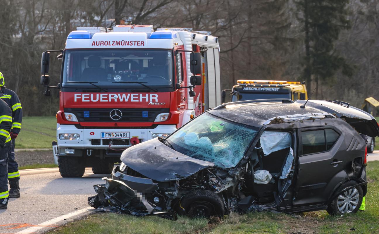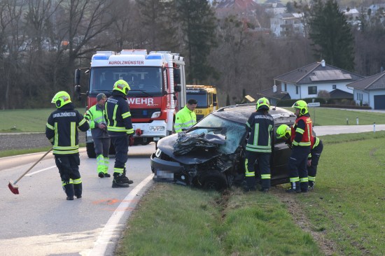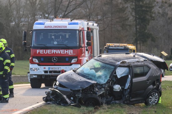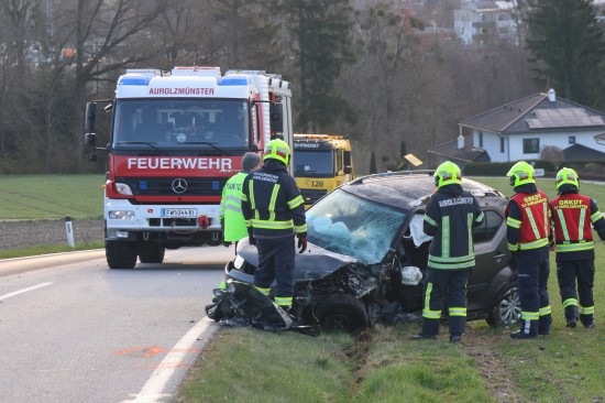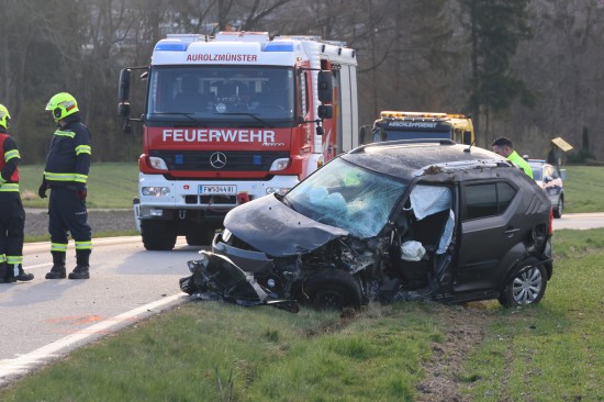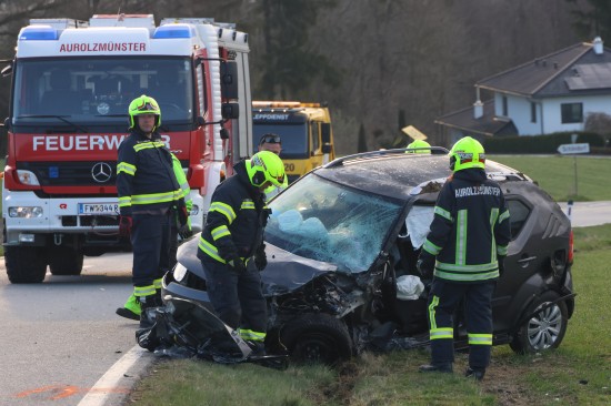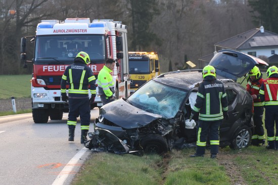 Aurolzmünster. Ein schwerer Verkehrsunfall hat sich Freitagfrüh im Gemeindegebiet von Aurolzmünster (Bezirk Ried im Innkreis) ereignet. Zwei Personen wurden bei dem Crash verletzt.