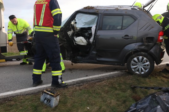 Ein schwerer Verkehrsunfall hat sich Freitagfrüh im Gemeindegebiet von Aurolzmünster (Bezirk Ried im Innkreis) ereignet. Zwei Personen wurden bei dem Crash verletzt.